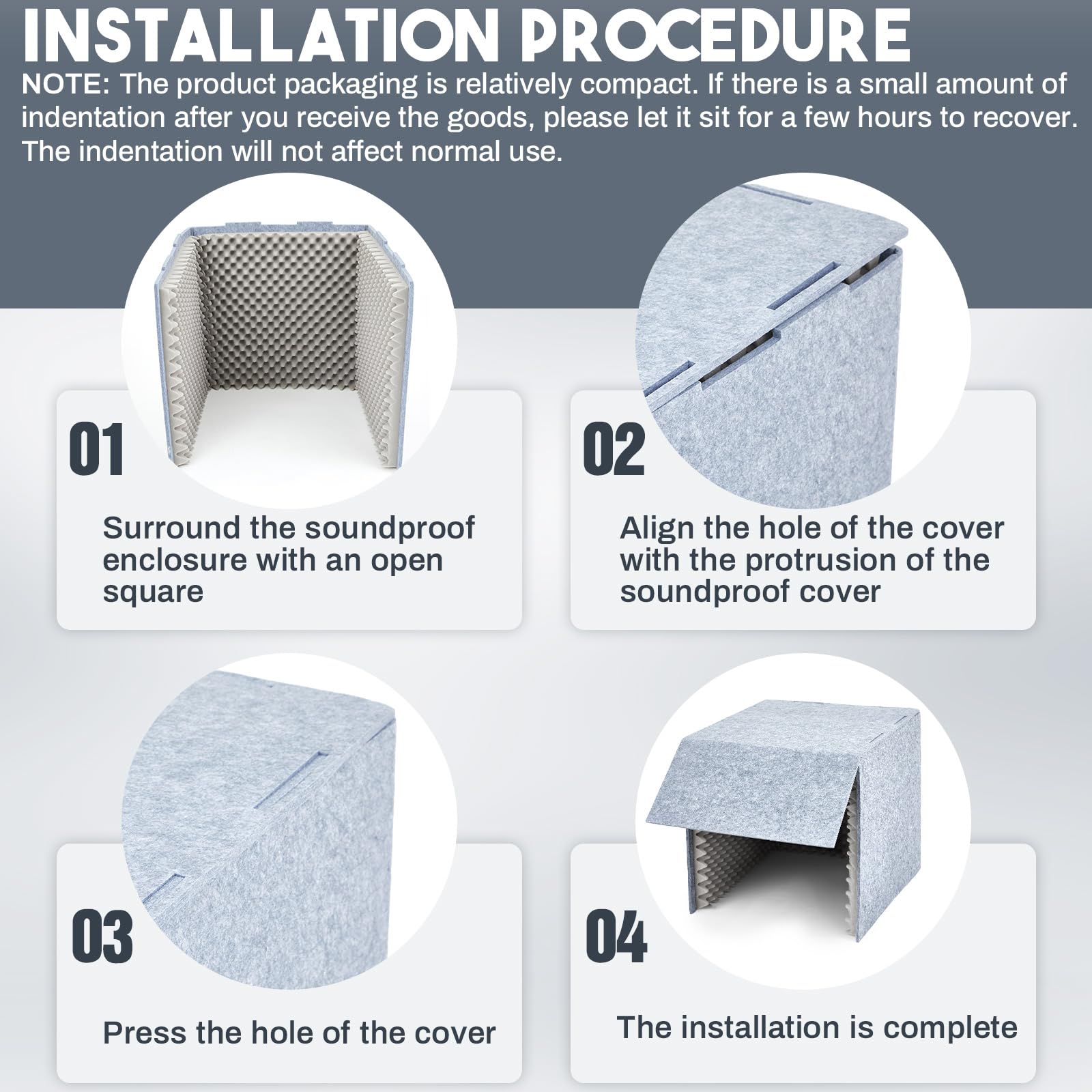 Easy Installation: this soundproof cover offers convenience through its portability and ease of installation; You only need to align and install according to the given steps; It's designed to setup a private sound space wherever you want and in any given situation.Intermittent use: Users are advised not to leave the computer inside the cover for extended periods, especially during recording or live streaming. It is recommended to remove the computer every 30 minutes to allow it to cool down