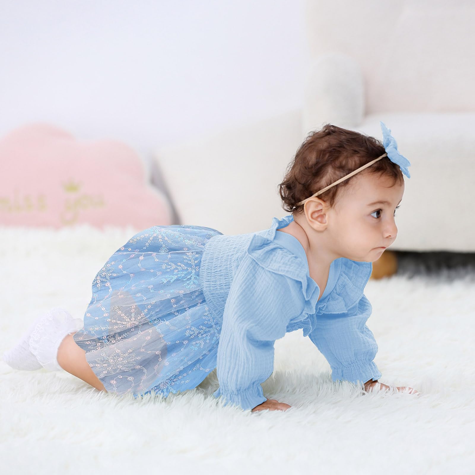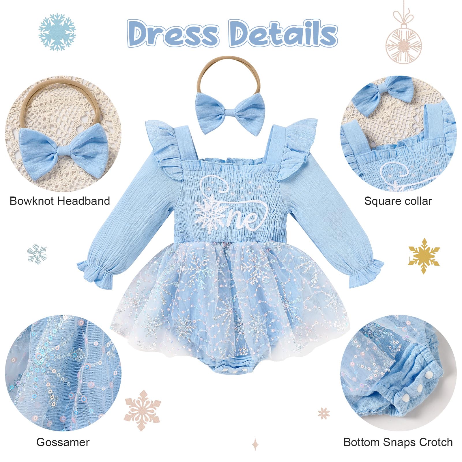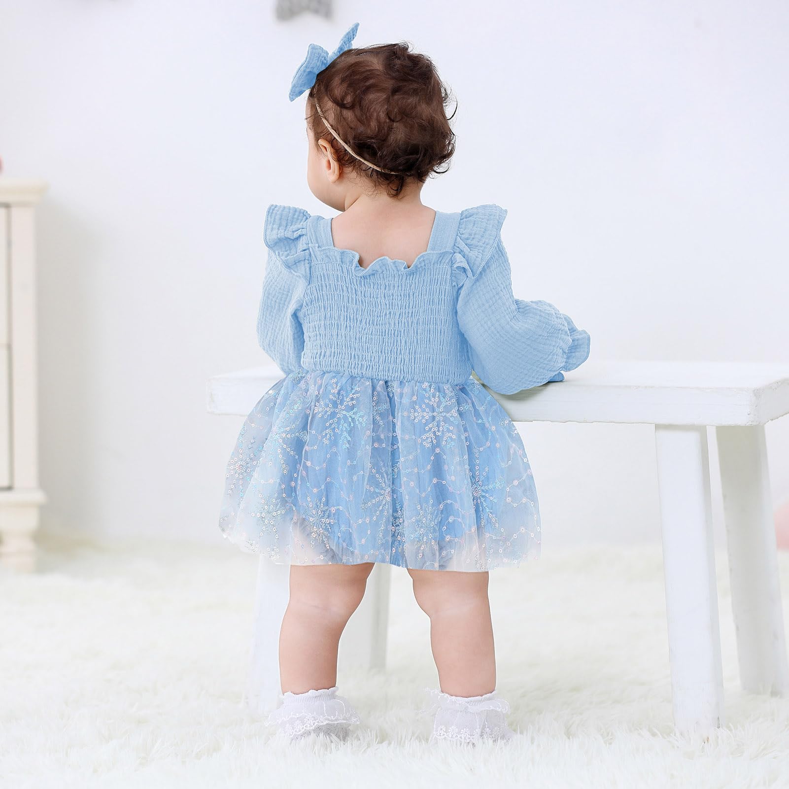Occassion: Baby girls princess 1st birthday clothes is a best choice for 1st birthday party. Baby rompers girl tutu dress suitable for many occasions, such casual, family parties, one birthday party, baby photo, baby shower gifts, festival, fall/winter daily life etc.