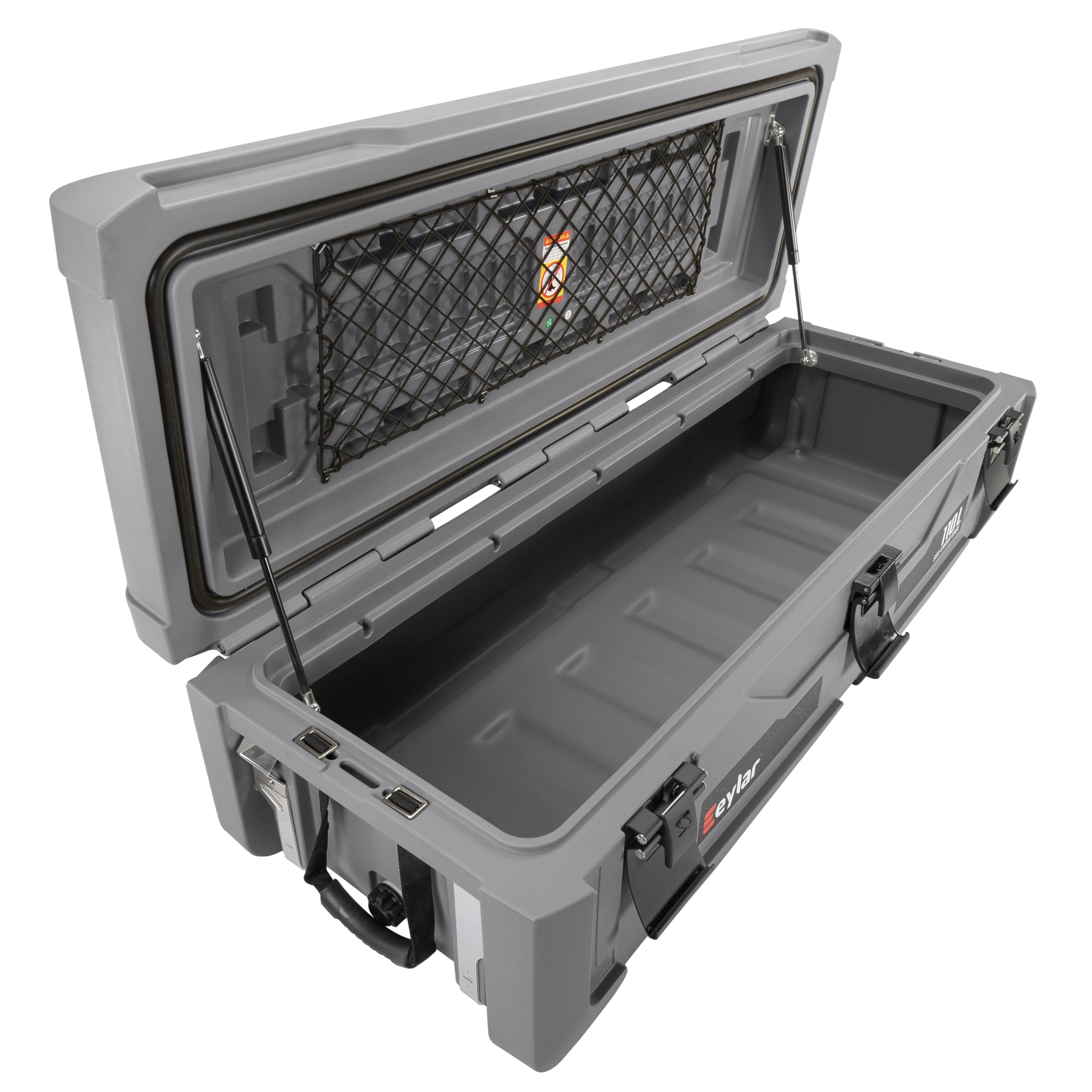The Eylar SRX-110 Large Offroad Transport Cargo Case is the ultimate storage solution for outdoor enthusiasts, overlanders, and adventurers who demand rugged durability and versatile functionality. With a 110-liter capacity, this heavy-duty case is built to protect your gear in the toughest environments, whether you’re navigating rocky trails, camping deep in the wilderness, or hauling essentials on a long road trip. Its reinforced construction and lockable latches ensure your equipment stays secure, while the rubber gasket lining provides exceptional waterproof protection, keeping your contents dry in any weather. The gas strut lid makes opening the case effortless, holding it open for easy access to your gear. Designed for multi-purpose storage, the SRX-110 is not just for tools and camping gear—it’s also an excellent food and dry goods storage solution. The included internal tray and divider help keep items organized, whether you’re packing cookware, non-perishable foods, or fresh ingredients for a weekend in the wild. The built-in drain system makes it easy to clean, making it perfect for use as a makeshift cooler when packed with ice. Plus, dual bottle openers add a touch of convenience for relaxing around the campfire. For those who prioritize safety and visibility, the SRX-110 comes with optional reflective stickers, making it easy to locate your cargo case in low-light conditions. The stackable design allows for efficient storage in your vehicle, on a roof rack, or in your garage, maximizing space without the risk of cases sliding off. Whether you’re heading off the grid, tailgating with friends, or simply looking for a reliable, all-weather transport case, the Eylar SRX-110 Large Offroad Transport Cargo Case is built to handle it all.