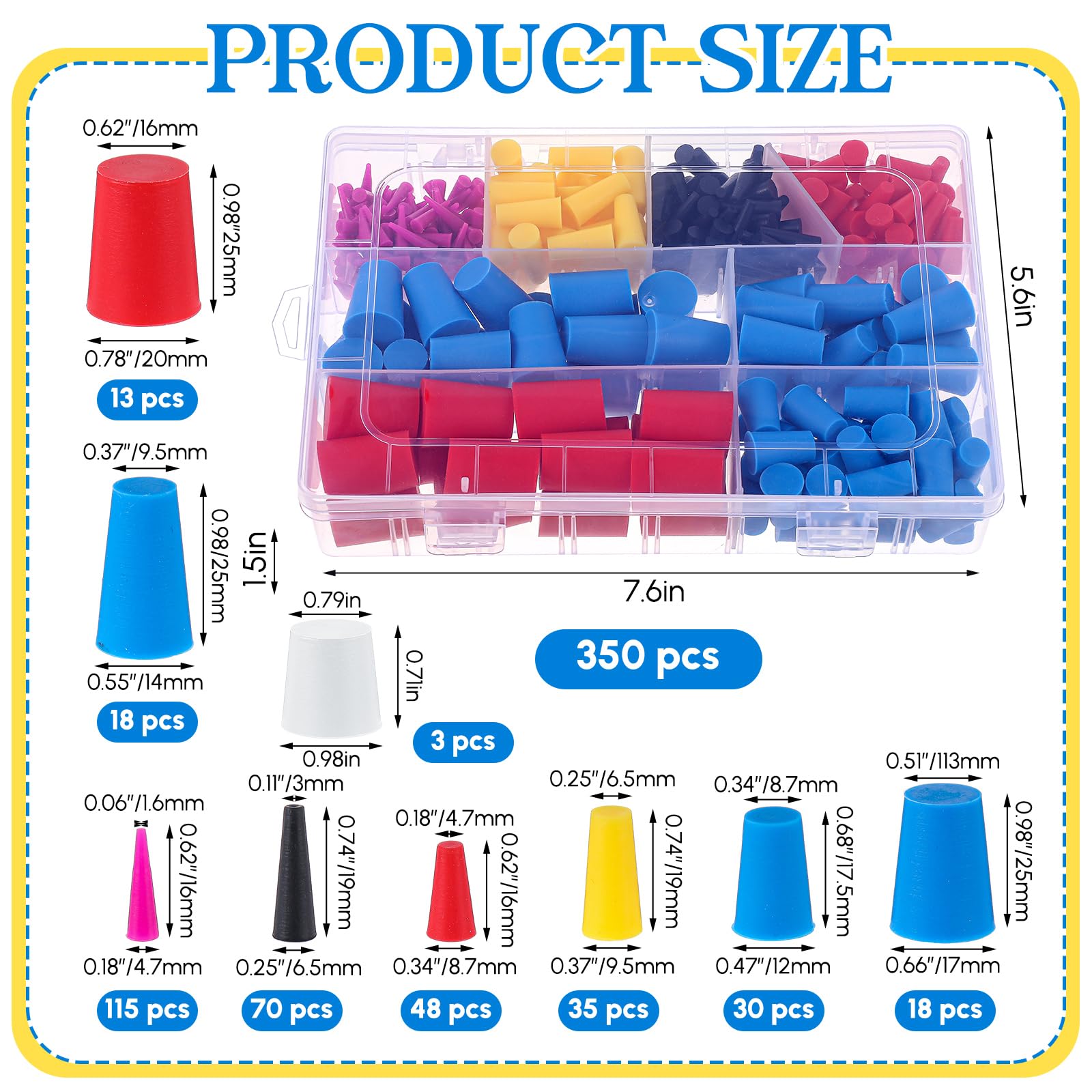 Comprehensive Set for Versatile Use: our silicone tapered plug set includes a total of 350 units in 8 distinct styles, along with a convenient storage box; This diverse collection ensures that you have the right plug for various tasks, all neatly organized