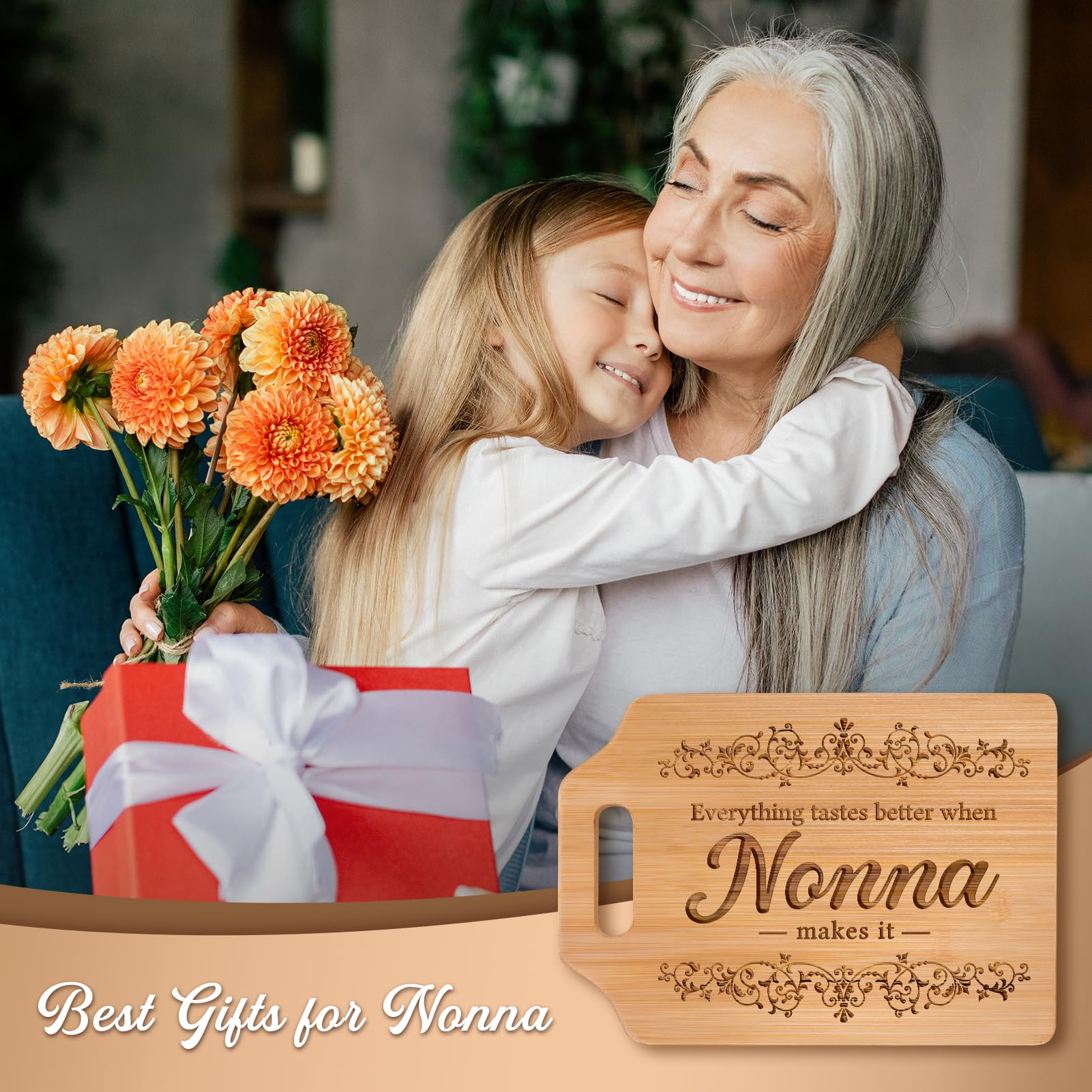 【Nonna Gifts for Nonna】Express your gratitude to your nonna with this special cutting board nonna gifts featuring the phrase "Everything tastes better when nonna makes it" Whether it's her birthday, Mother's Day, Thanksgiving, Christmas, or simply a gesture of appreciation, this cutting board will remind her of your love every time she uses it.
