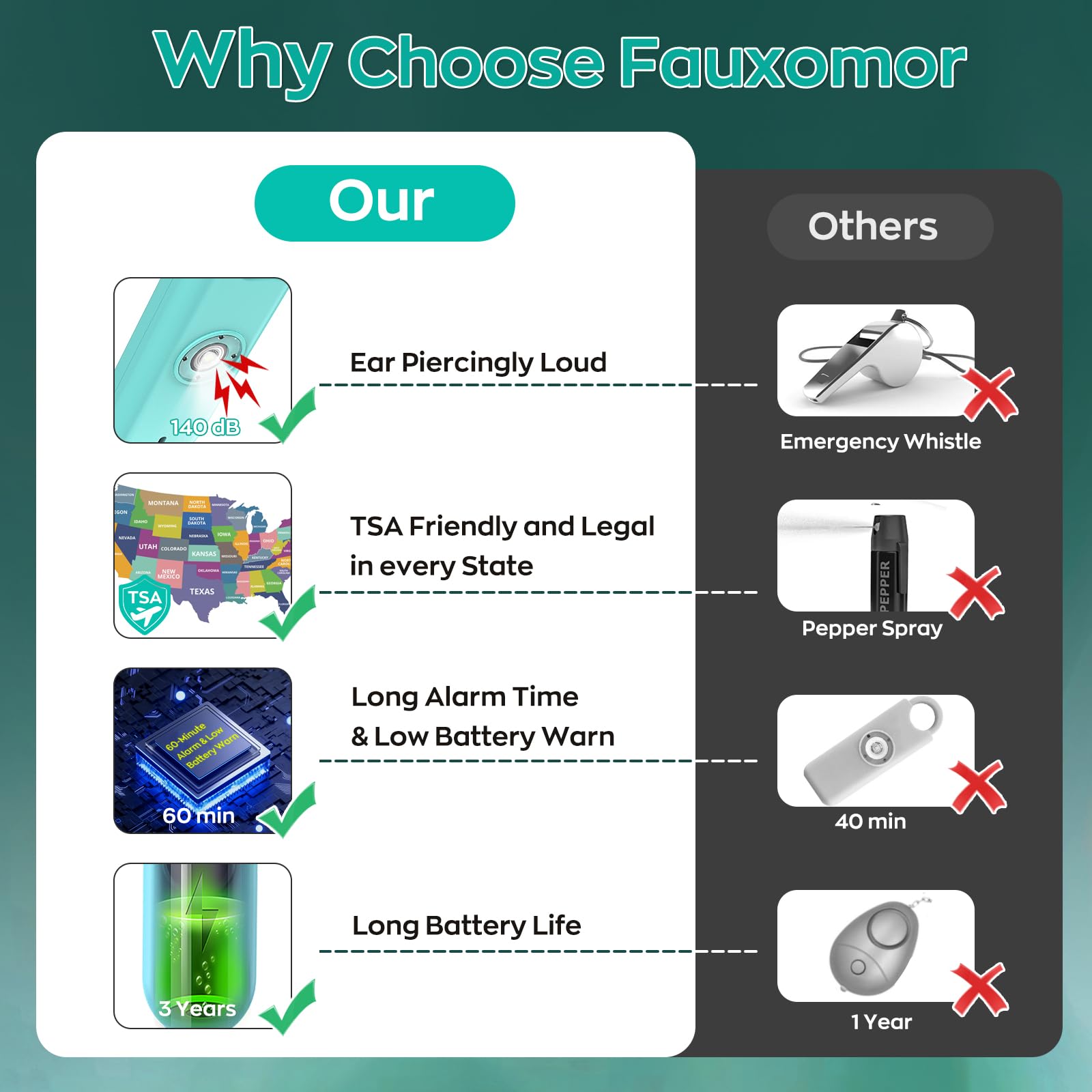 A Priceless Perfect Gift: Our protection keychain alarm for women provides safety for your loved ones, carry Fauxomor with you from day to night. Ideal for students, joggers, seniors, women, night shift workers, and people of all ages, it makes a thoughtful gift for occasions like Valentine's Day, Mother's Day, Christmas, birthdays, and more.