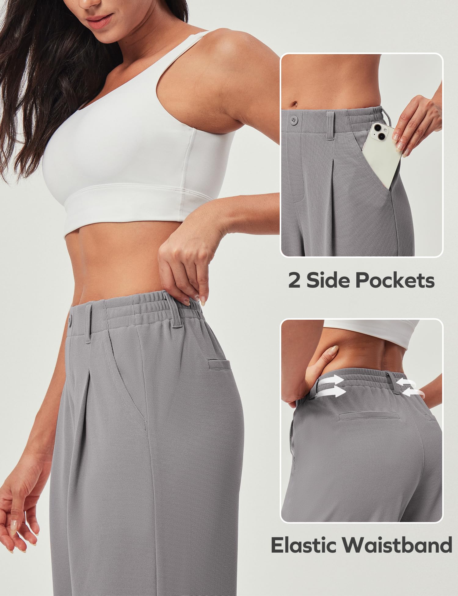 Customized for you: Offered in 26'' and 28'' inseams, these wide-leg trousers provide a customized fit for various heights and body shapes. Stay stylish and comfortable in these must have waffle stretchy work pants for women!