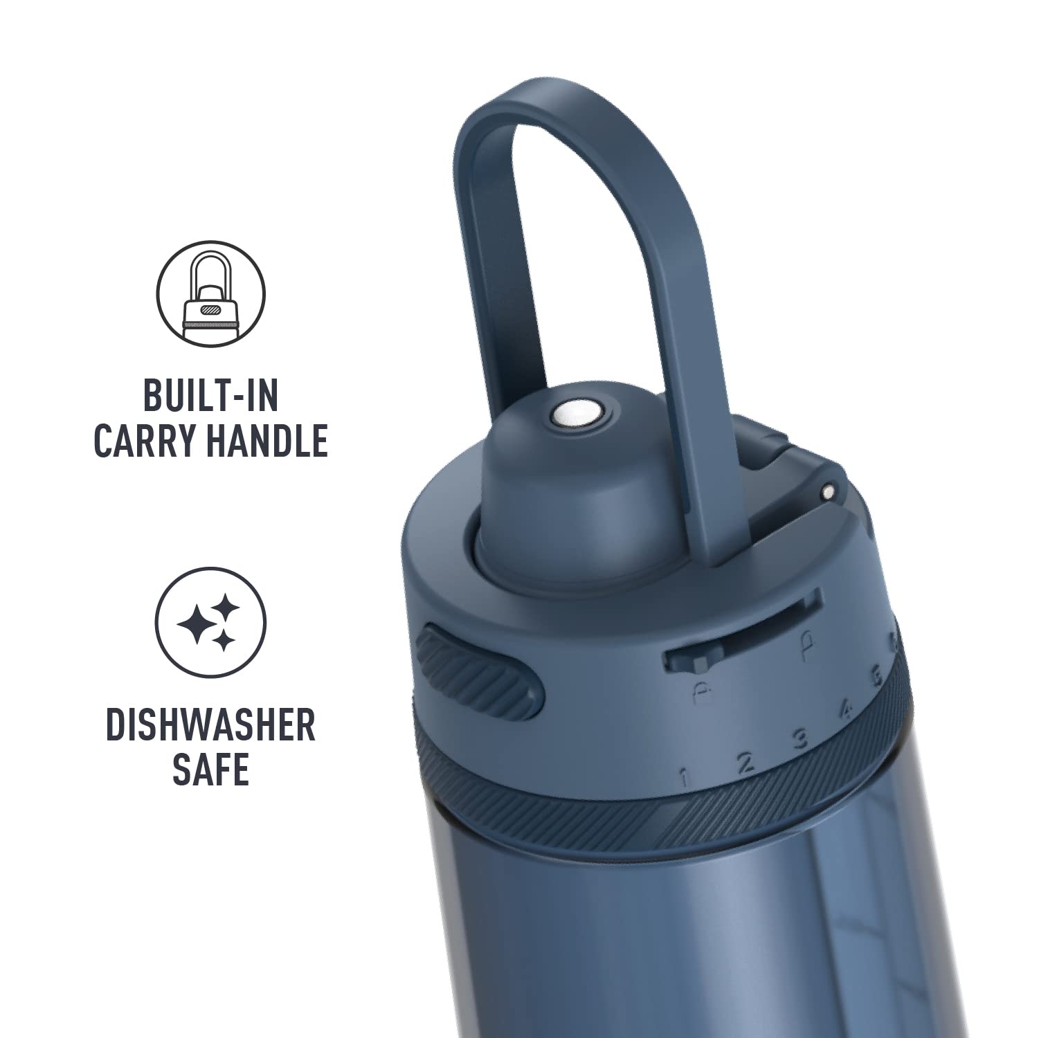 The 24oz Hydration Bottle from the ALTA SERIES BY THERMOS keeps you hydrated for whatever the day has in store. We know that a life in motion stays in motion. Thatβs why we made the Alta Series to fit your world without skipping a beat. Equipped with a hygienic covered spout, locking cap, and rotating hydration meter, the 24oz. hydration bottle helps you stay hydrated and in control, wherever that may be. This bottle also includes a carry handle and fits in most car cup holders for added convenience while on-the-go. Made with durable and dishwasher safe TRITAN from Eastman, this hydration bottle is easy to clean, easy to use, and has you completely covered no matter where your day takes you.