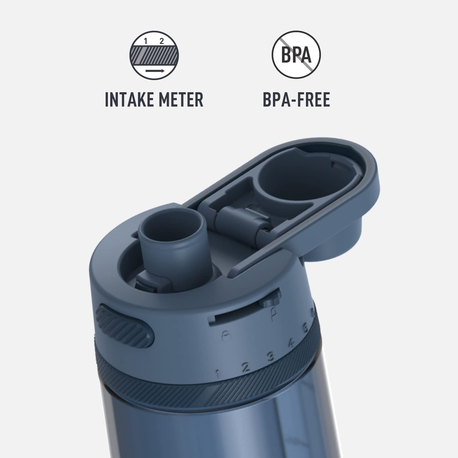 HYDRATION INTAKE METER: To reach your hydration goals for the day, the hydration intake meter helps you track how many bottles you drink each day