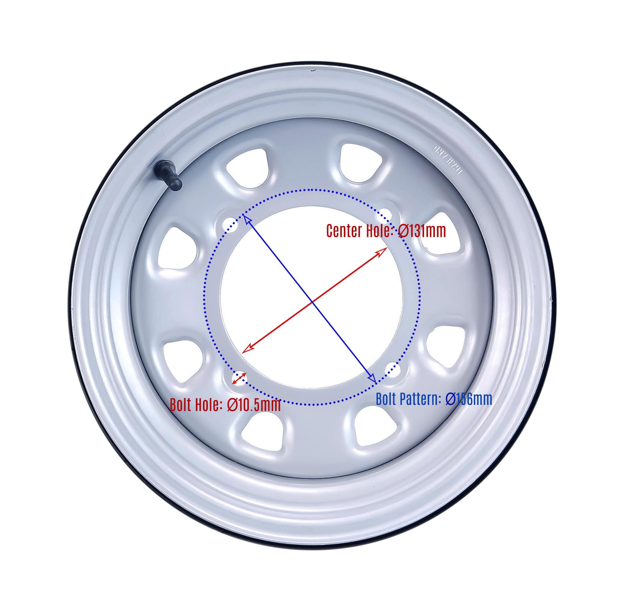 Wheel detail: 4-156mm bolt pattern, center hole: 131mm, bolt hole dia: 10.5mm. offset: 4+3, style: Silver mod