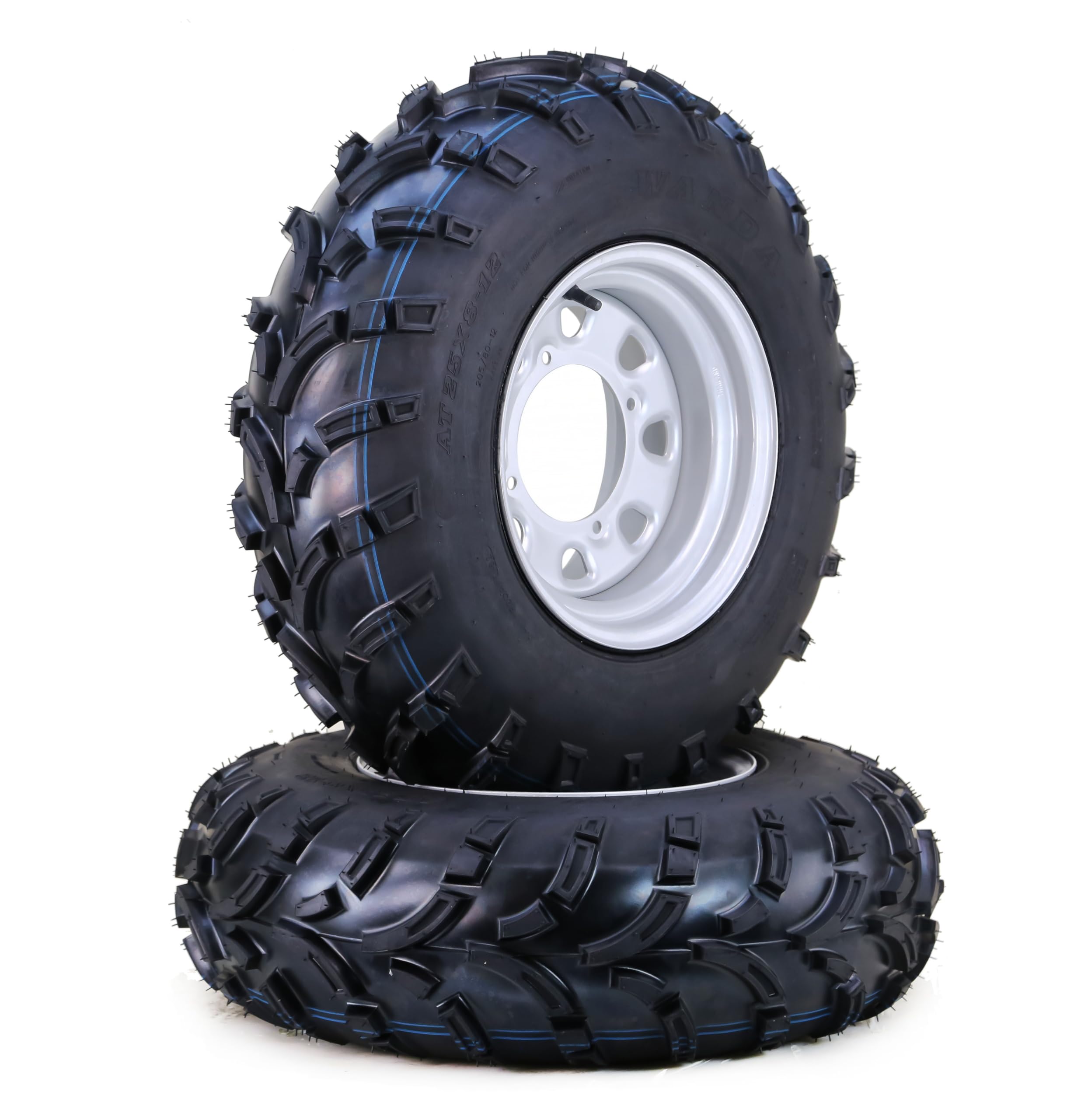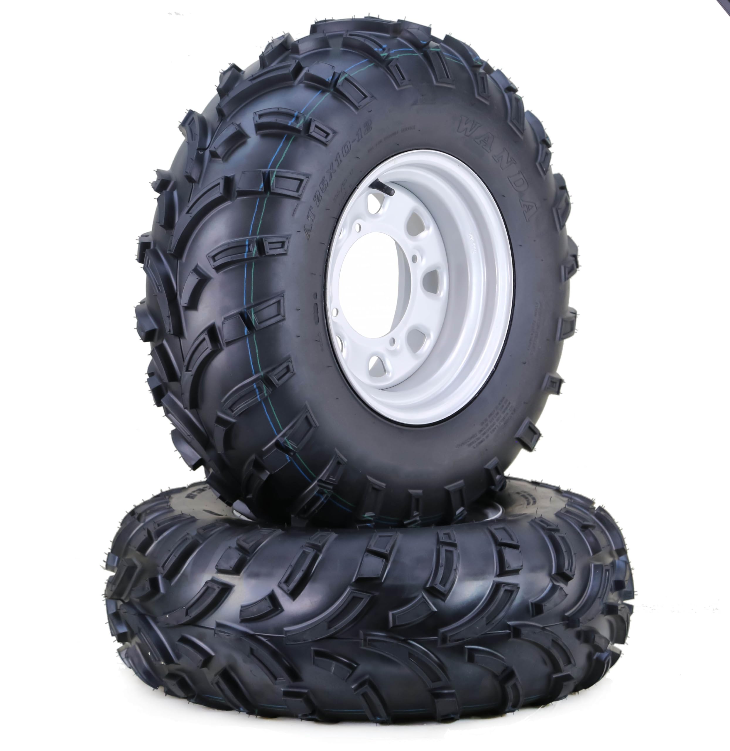 Durable, light weight, smooth rolling design provides quicker acceleration and braking. Deep, widely spaced tread bras shed mud, Excel in a wide variety of terrains. Heavy 6 ply rated nylon construction resists punctures and abrasions. Wheel detail: 4-156mm bolt pattern, center hole: 131mm, bolt hole dia: 10.5mm. offset: 4+3, style: Silver mod Tire Specifications Tire Size: 26X9-12 Brand: WANDA Tread Pattern: P373 Ply Rated: 6 Tread Depth: 0.63 Rim Width: 7 Max Load: 410lbs@7psi Tire Specifications Tire Size: 26X10-12 Brand: WANDA Tread Pattern: P373 Ply Rated: 6 Tread Depth: 0.63 Max Load: 440lbs@7psi Please note: fitment guide is for reference only and does not guarantee the tire will fit your specific model. Please check your owner's manual to ensure proper fitment.