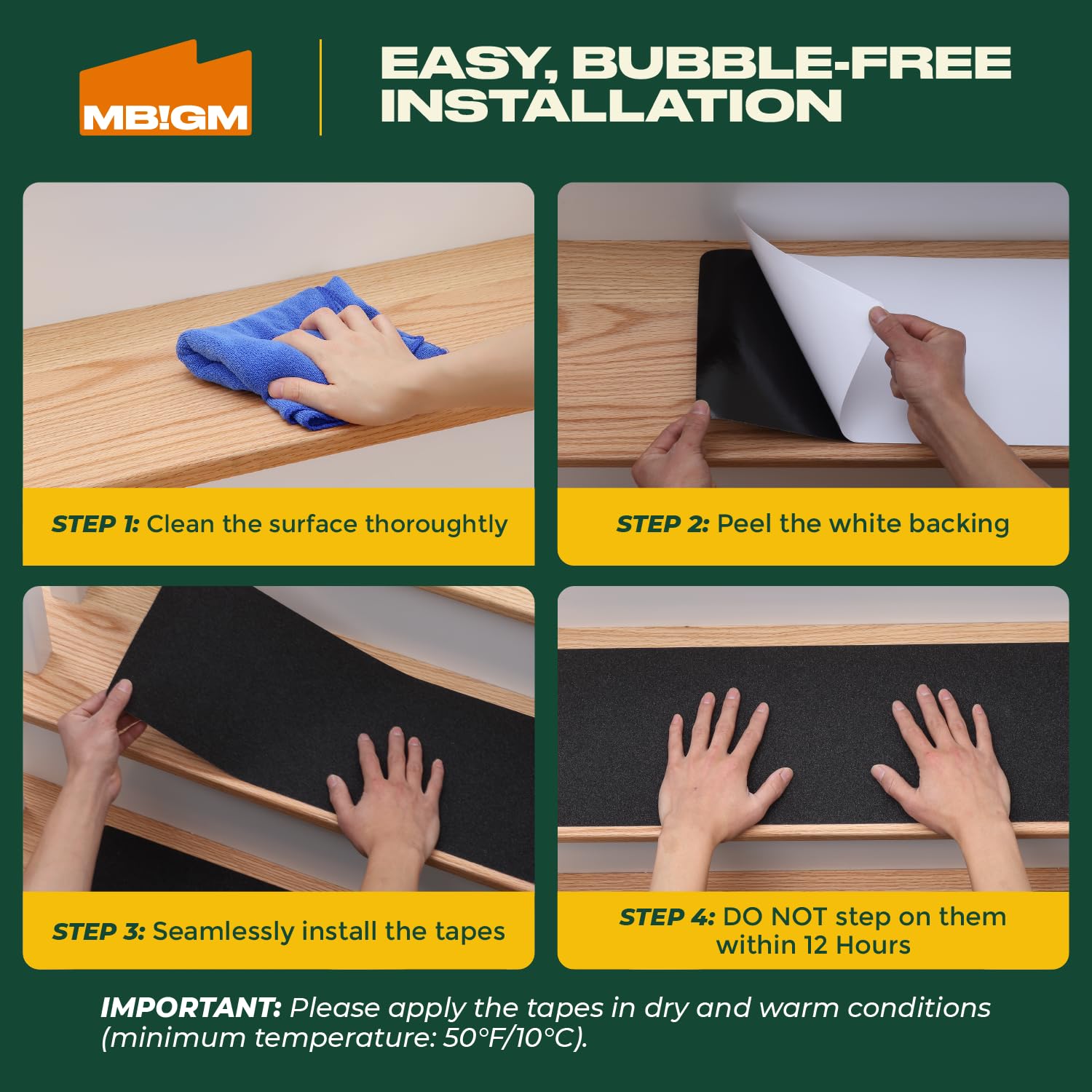 Enhanced Safety Assurance: MBIGM Non-skid tapes with 80-grit aluminum oxide traction provide you and your family with reliable protection against falls and slips, ensuring your safety in any weather condition.