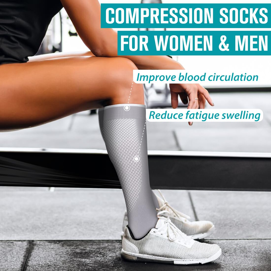 UPGRADE YOUR COMPRESSION SOCKS DRAWER! - With all the tasks of work and family (and of life itself!) we may forget to pay attention to and maintain the health of our legs. Our compression socks are designed to help increase circulation, improve leg and foot comfort, and reduce soreness and swelling, increase energy, All day comfort.Great for long periods of sitting or standing, endurance sports, flying and travel, post-workout recovery, pregnancy, and spider & varicose veins.
