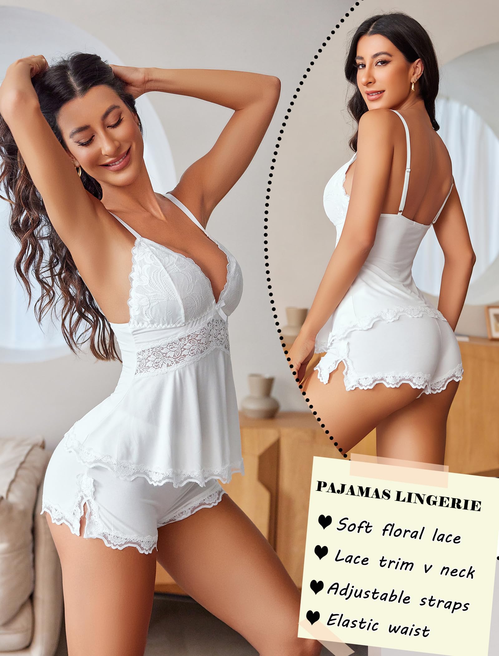 Avidlove short pajamas camisole Set featuring lace cups patchwork, adjustable spaghetti straps, drawstring waist. Very cute. Its casual style makes it not awkward even when kids at home or guest visits. The Pajamas Set is comfortable for your life