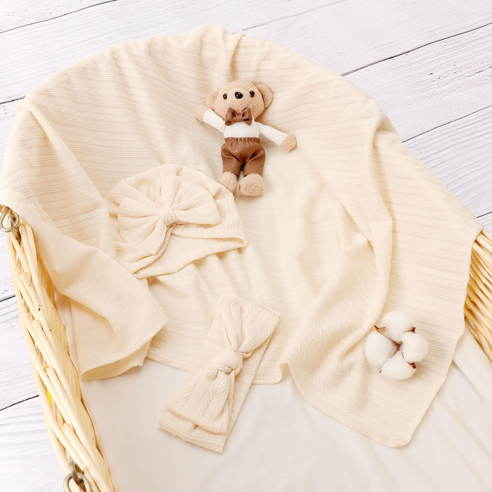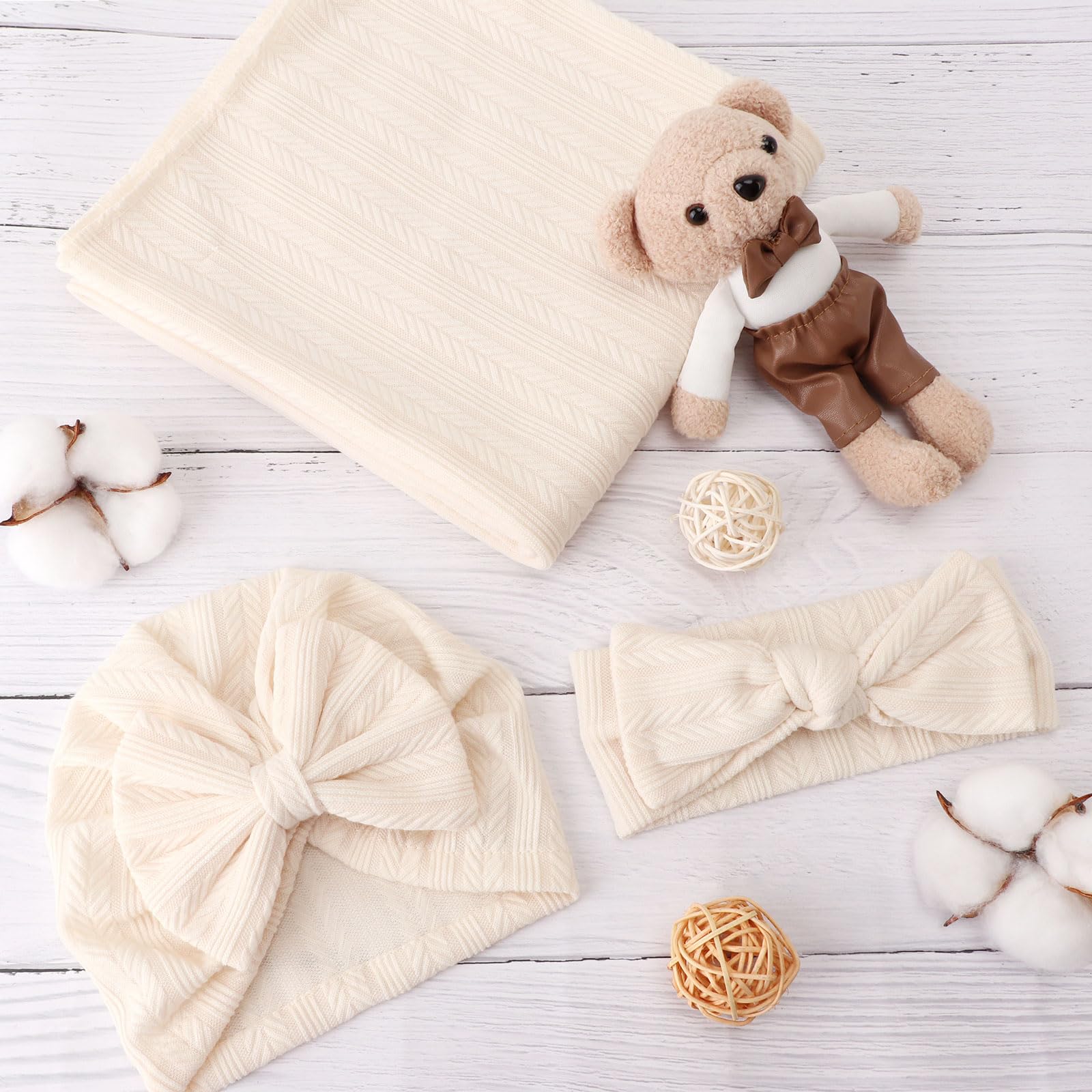 💝【Soft Fabric】- This baby blanket and headband hat set are made of super soft, stretchy and comfortable fabric. Warm and comfortable for baby's delicate skin. They contain no any harmful chemicals and are gentle on even the most sensitive skin.
