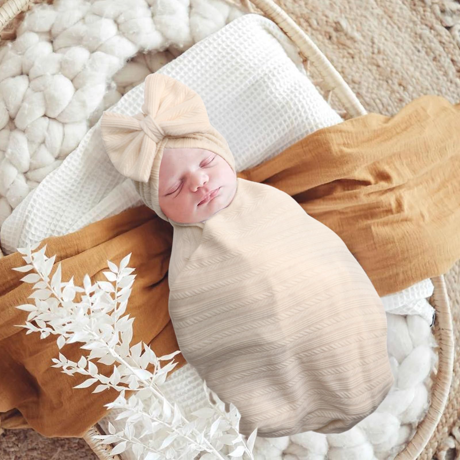 💝【Practical and Fashionable Design】- This comfortable newborn swaddle set is designed with a textured knit to make it more comfortable for your baby to wear without slipping. Wheat ear design is the trend this year! Our baby blanket has no zippers, no Velcro or snaps to protect your baby from any potential risks, no danger to your small angel.