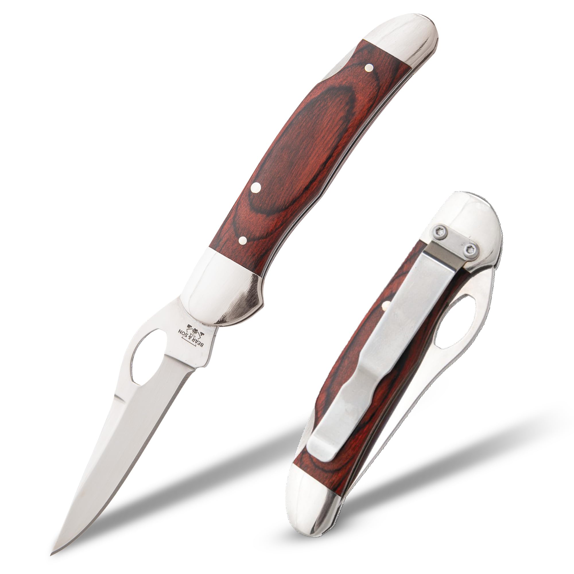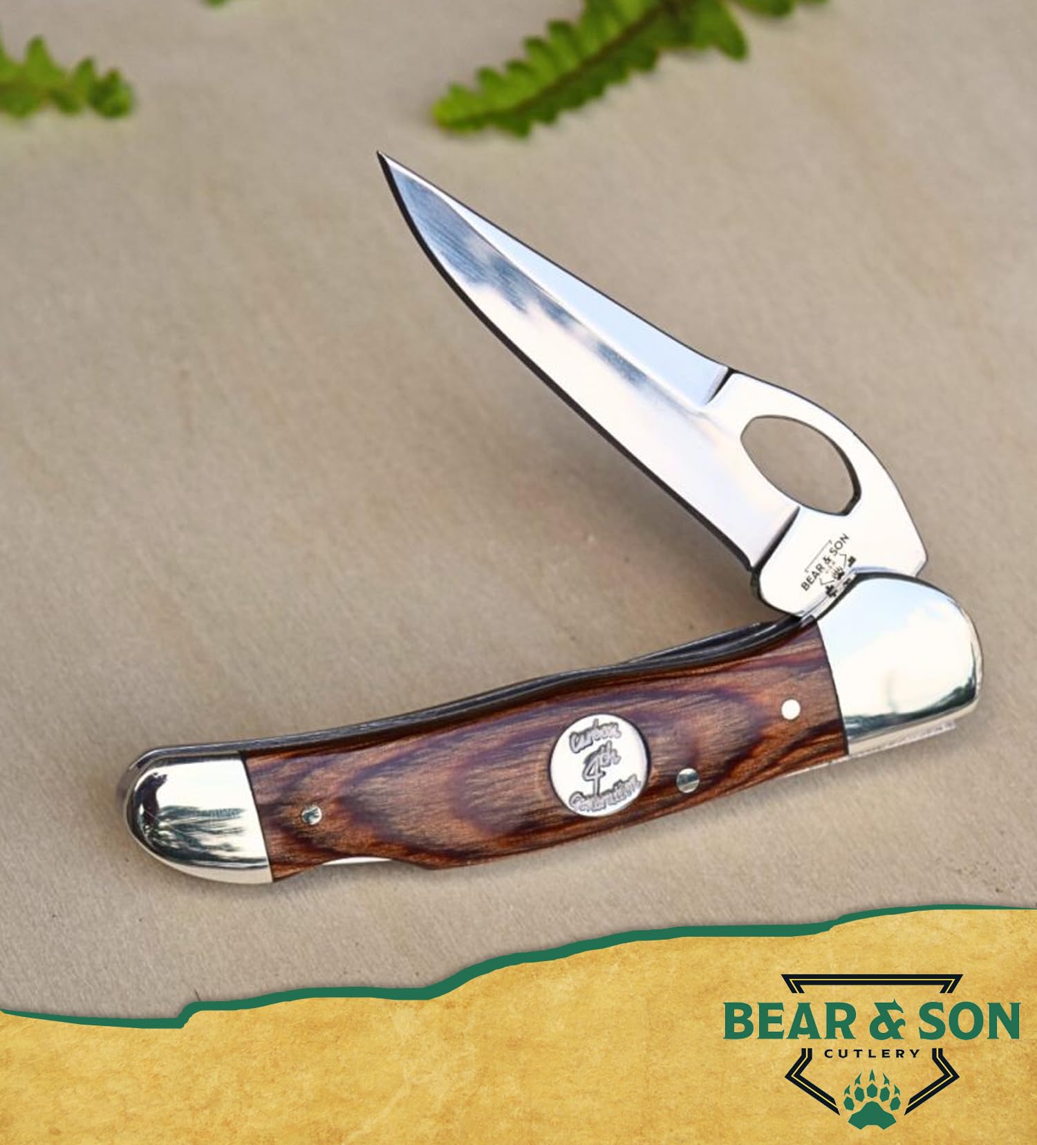 Bear & Son Cutlery 3 3/4 inch locking cowhand knife with heritage Walnut handle. Lifetime warranty. About Bear & Son Cutlery: we have a skilled and experienced work force capable of performing many of the extra hand operations that go into the making of our products. The Bear & Son Cutlery factory is unique. It is full self-contained. While some companies only assemble parts brought from various suppliers and put their names on the product, we do everything in-house from building our own blanking dies to heat treating, grinding and Assembly, and hand finishing our products. These steps ensure that Bear & Son Cutlery is of excellent quality and a Real value for both the dealer and consumer.