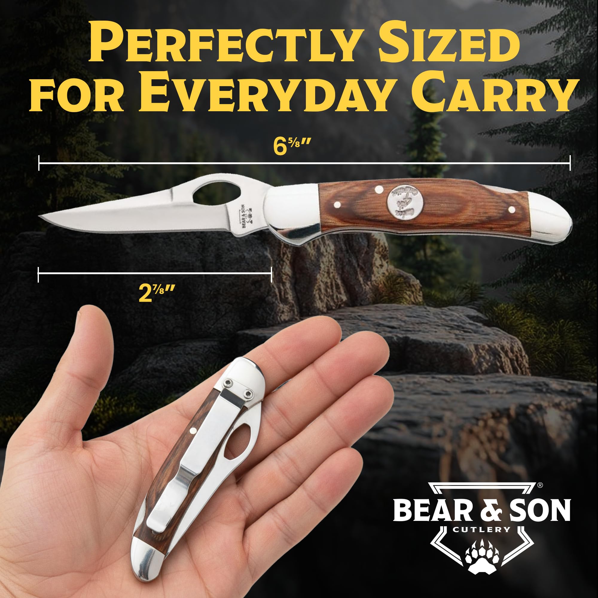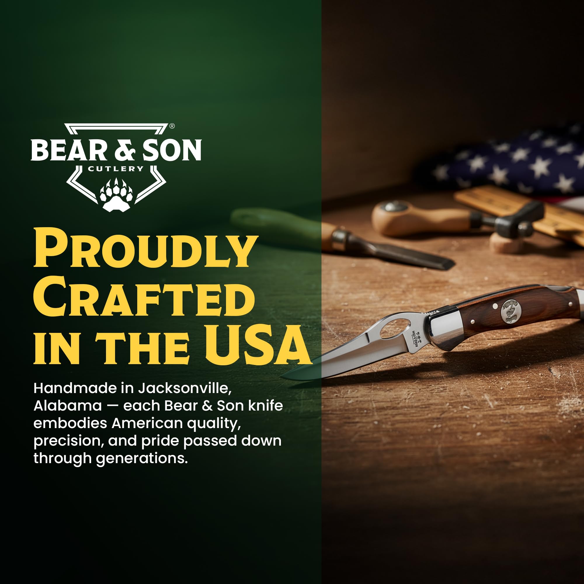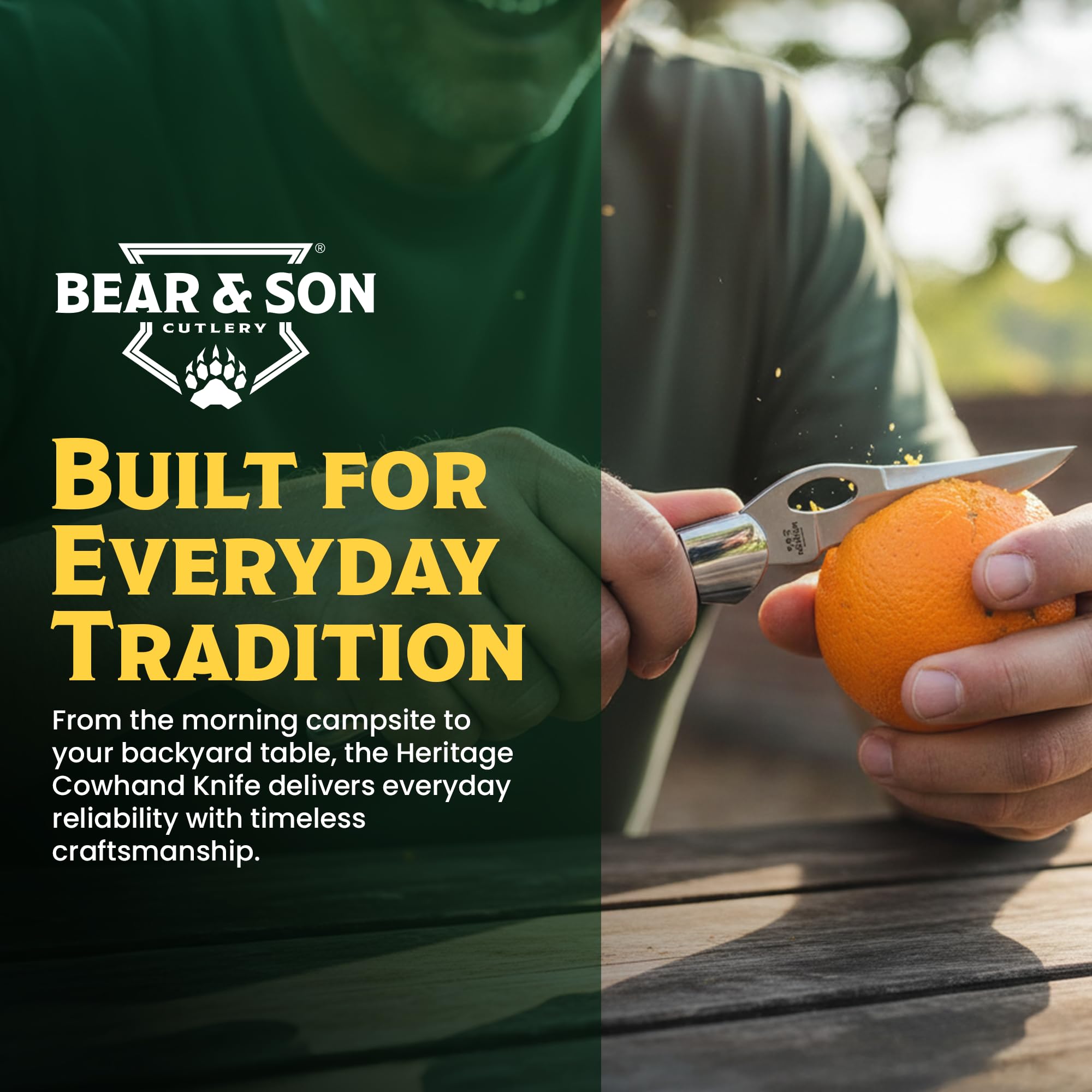 BUILT IN THE USA & BACKED FOR LIFE — Proudly made in Jacksonville, Alabama, the Heritage Cowhand represents Bear & Son’s commitment to quality. Every knife is covered by a limited lifetime warranty against defects in materials and workmanship.
