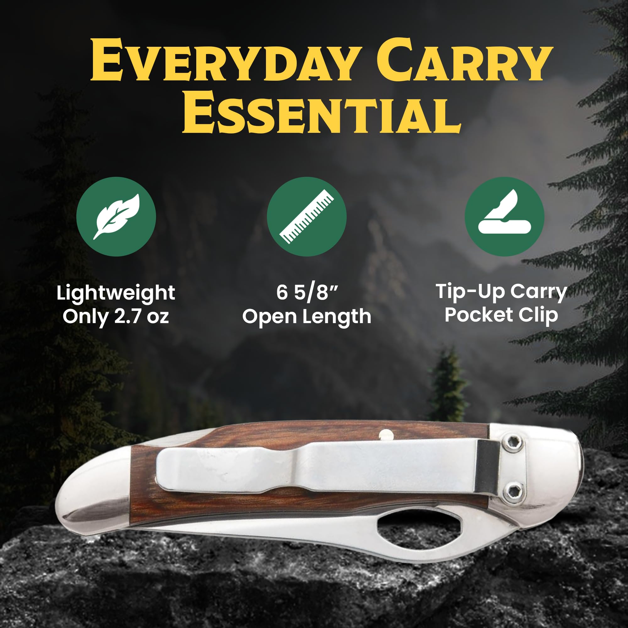 LIGHTWEIGHT & COMPACT EDC — Weighing just 2.7 ounces with a 3 ¾-inch closed length, this knife fits comfortably in your pocket or pack. Its slim, balanced profile makes it a practical choice for camping, outdoor activities, or daily cutting tasks.
