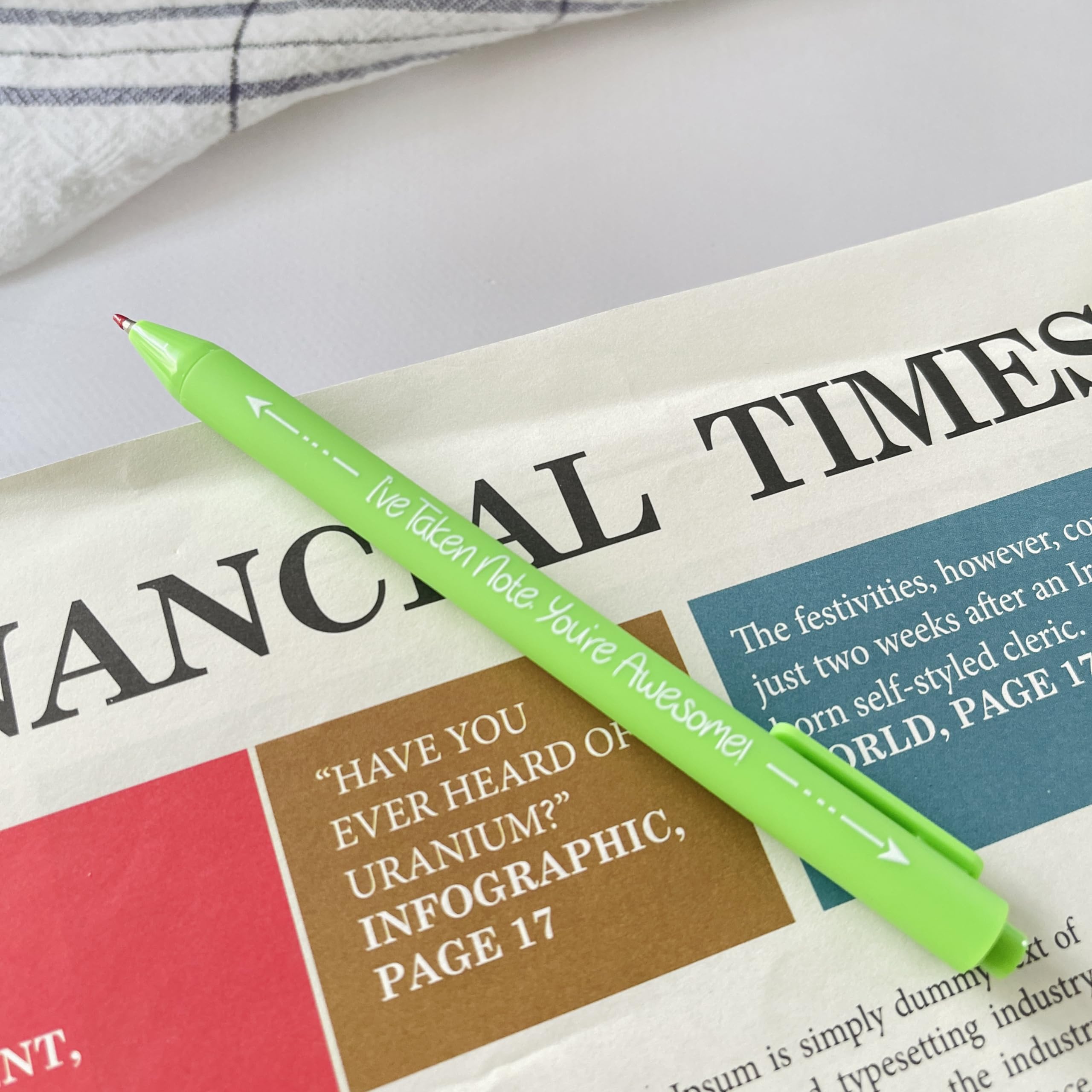 【THE PERFECT GIFT 】: There is nothing like a fun light insult on a pen. Get compliments when you interact with people or when you lend a pen to someone. If you don't get a compliment you will get a few laughs.Perfect for a office mate,bachelorette party, birthday, co-workers, team gift, spreading good vibes to friends and family, or any occasion from big to small.
