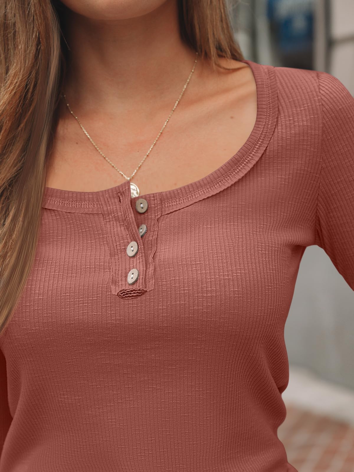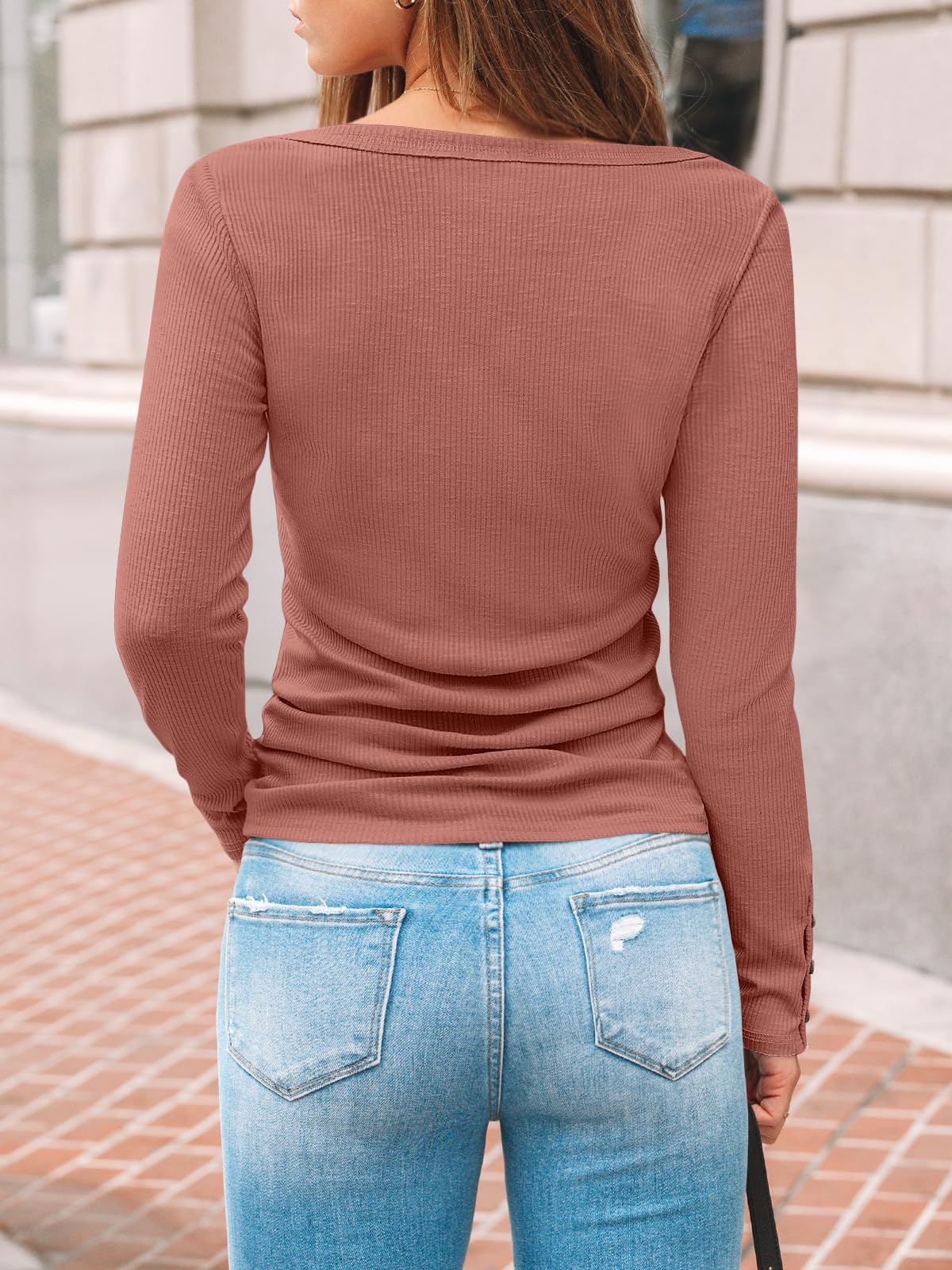 Design: Henley long sleeve shirts, button details on sleeves, ribbed knit structure and plain-colored design, the neckline button can be adjusted at will to create a sexy v-neck or scoop neck. Are all further eye-catching details