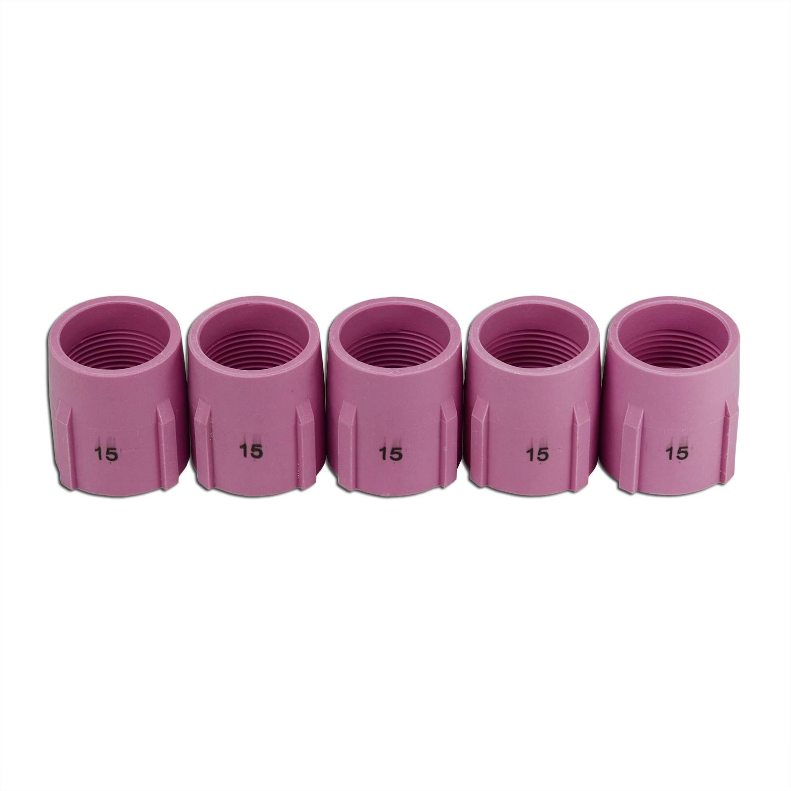 Large gas lens Alumina ceramic cups 53N89 #15 for large gas lens fit TIG welding torch 9 17 18 20 26 Ref No : 53N89 #15 15/16" Orifice Size : (15/16" x 1-5/16 ) D24 x 34mm Quantity: 5pcs These Alumina Large Gas Lens fit all 9 17 & 26 series air cooled torches and 18 20 series water cooled torches, including the Lincoln PTA-17, PTA-18 and PTA-26 torches, Miller Diamondback DB17, DB18 and DB 26 torches, along with the Weld craft WP-17, WP-18 and WP-26 torches.