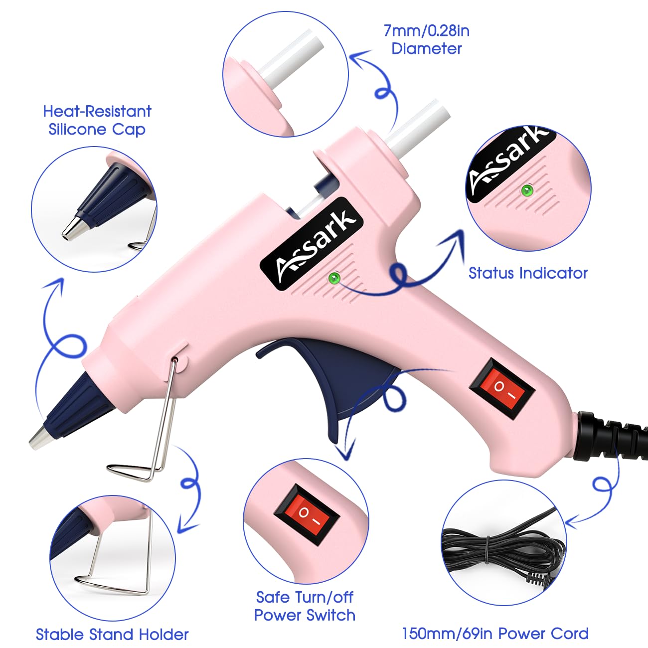 【Better Glue Sticks and Fast Heating】:This hot glue gun comes with 30 (130*7mm) high quality clear PVC hot glue sticks, which makes it last longer and better than (100*7mm) hot glue sticks. It takes 3 minutes to warm up, keeps the temperature constant automatically.