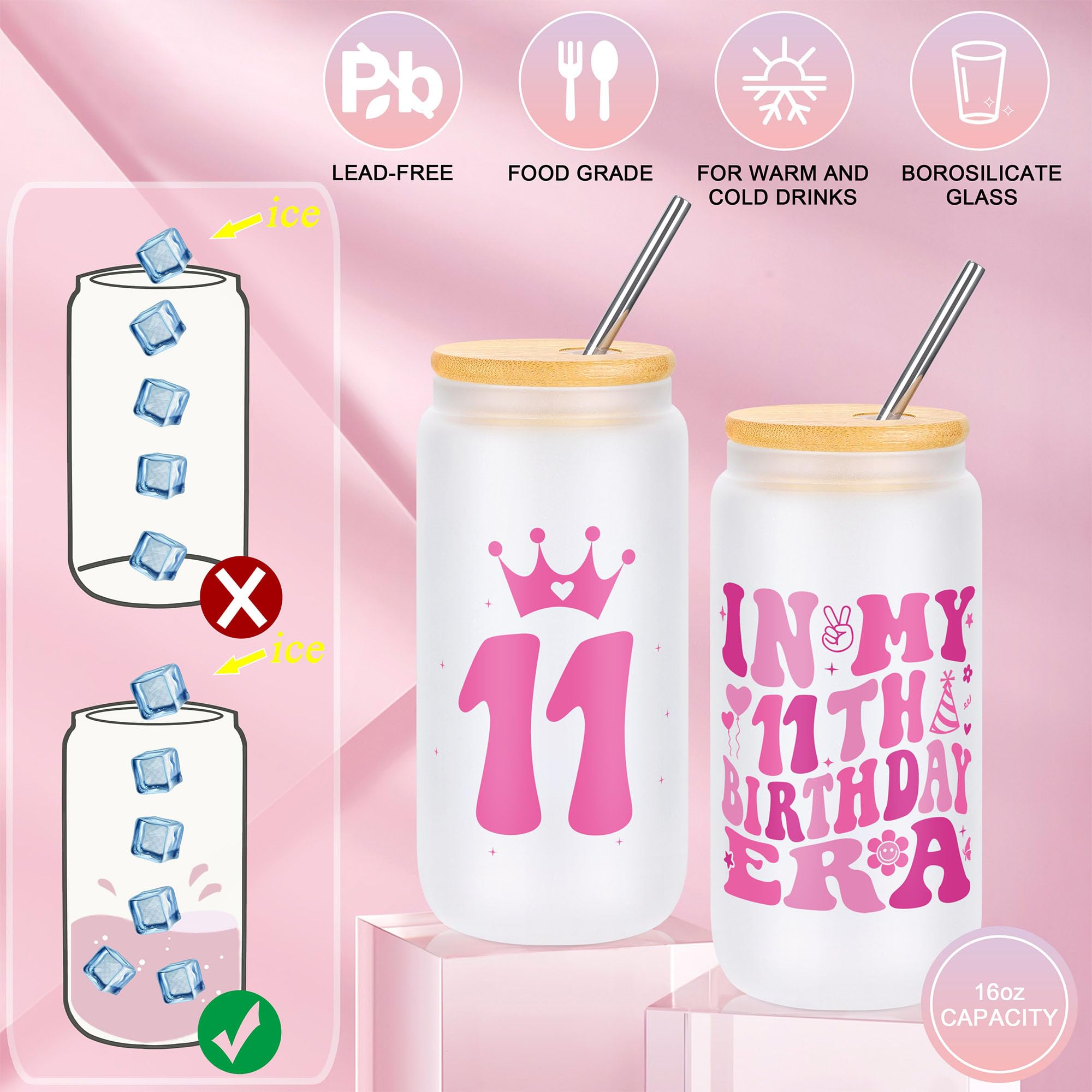 đă11 Year Old Beautiful Teen Girl GiftsăBirthday 6 piece set includes 1 x exquisite patterns, fashionable handbag, 1 x In my birthday era makeup bag, 1 x 16 Oz can glass with lid and straw, 1 x Socks made of pure cotton, unique design and cute style, 1 x heartfelt congratulations card on kraft paper and 1 x stylish pearl necklace with a souvenir card.