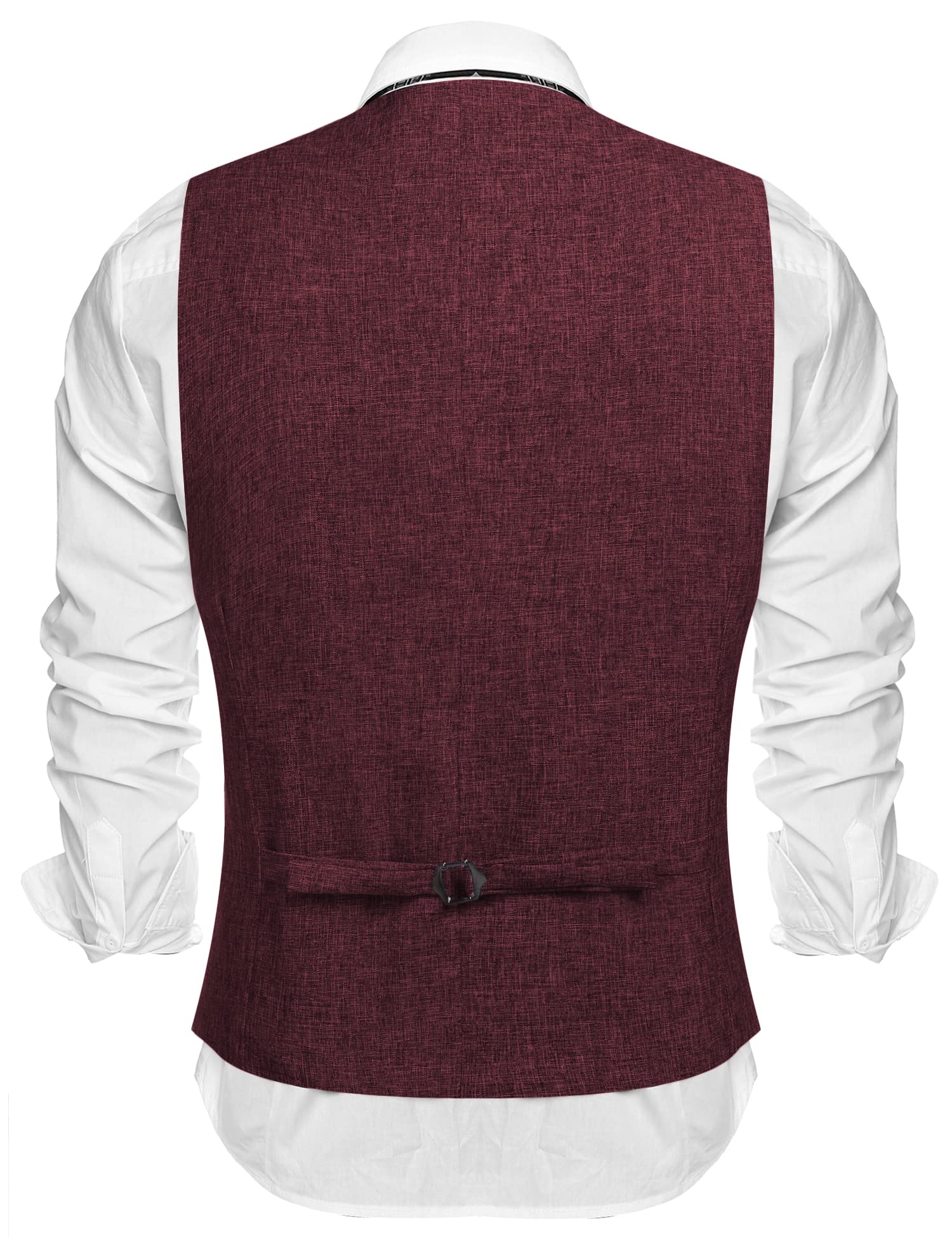 Business Modern Vest Design--- Leisure simply style suit vest beautifully cut, excellent craftmanship, designed with 2 front pockets,1 chest pocket, 4 button front closure, adjustable back strap offers you more accurate fit.