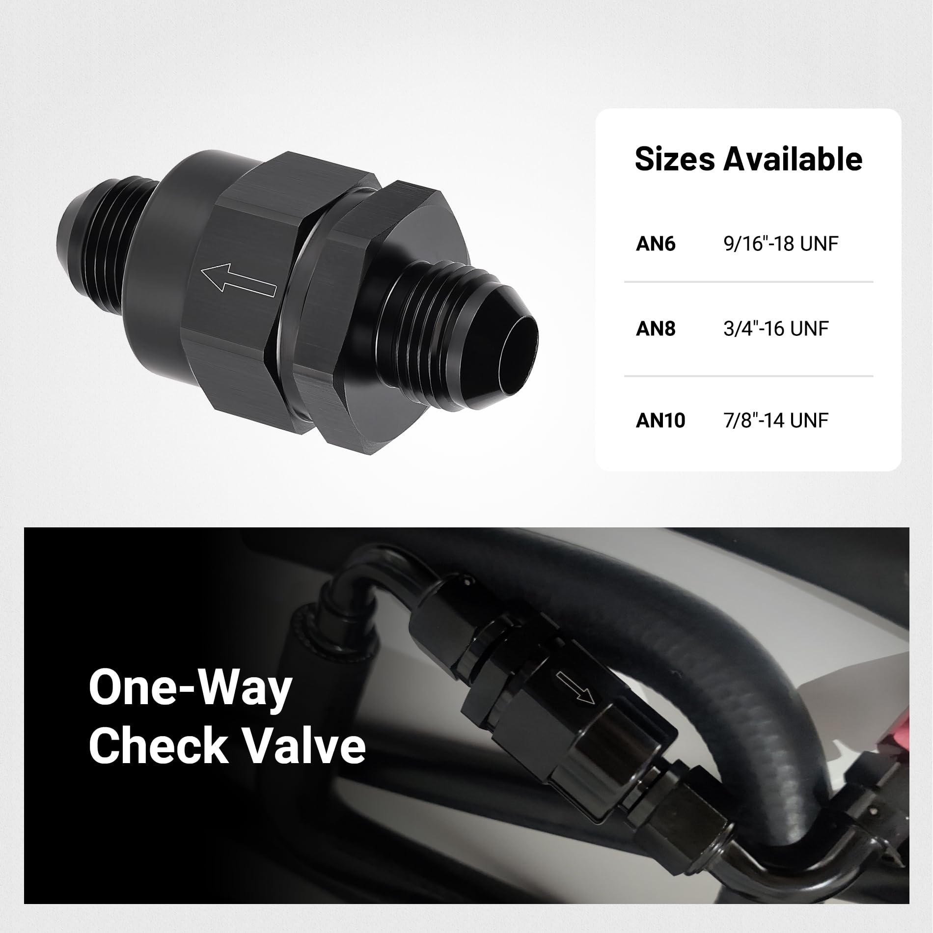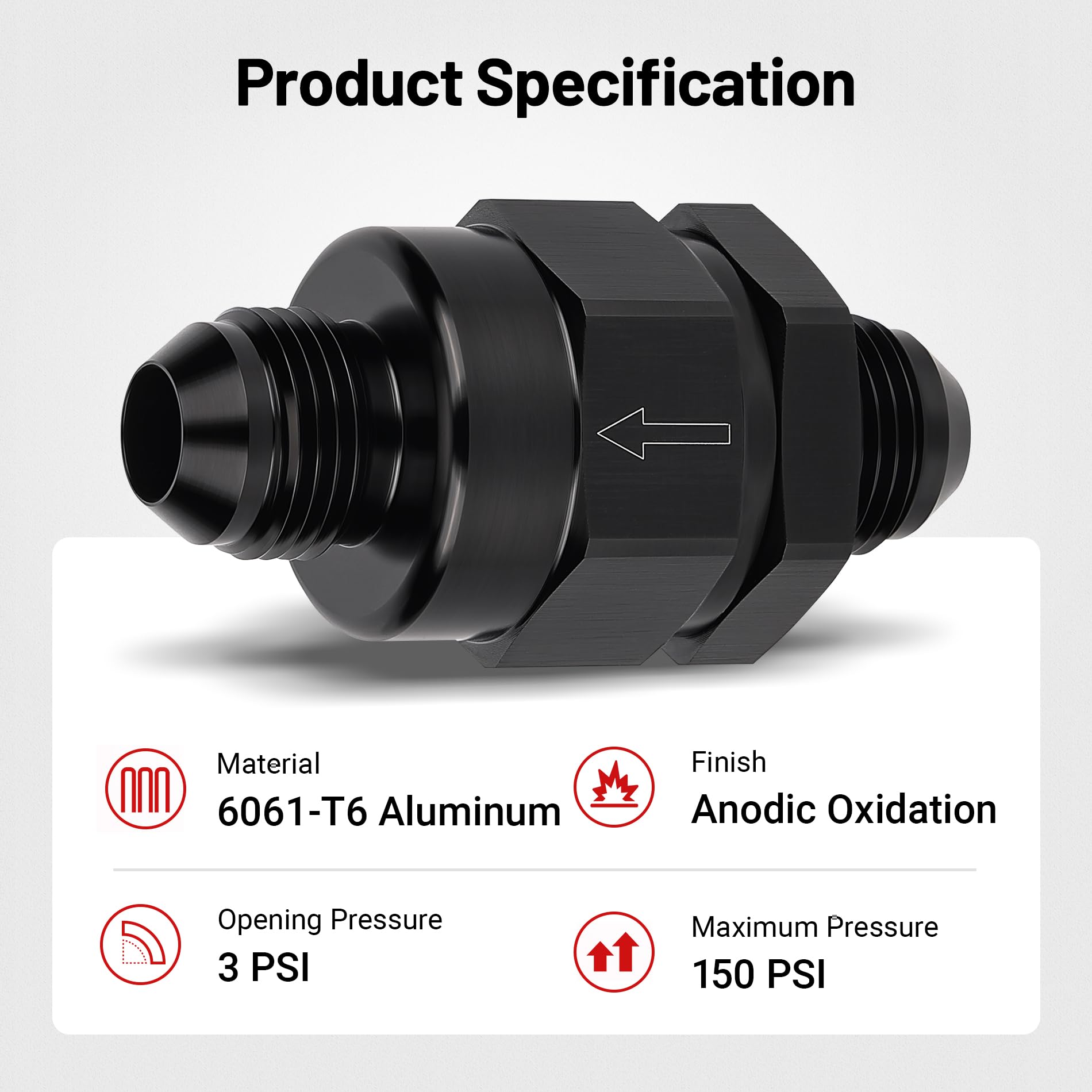 Material: Made of high-strength 6061-T6 aluminum alloy, the check valve is black anodized for enhanced corrosion and wear resistance.