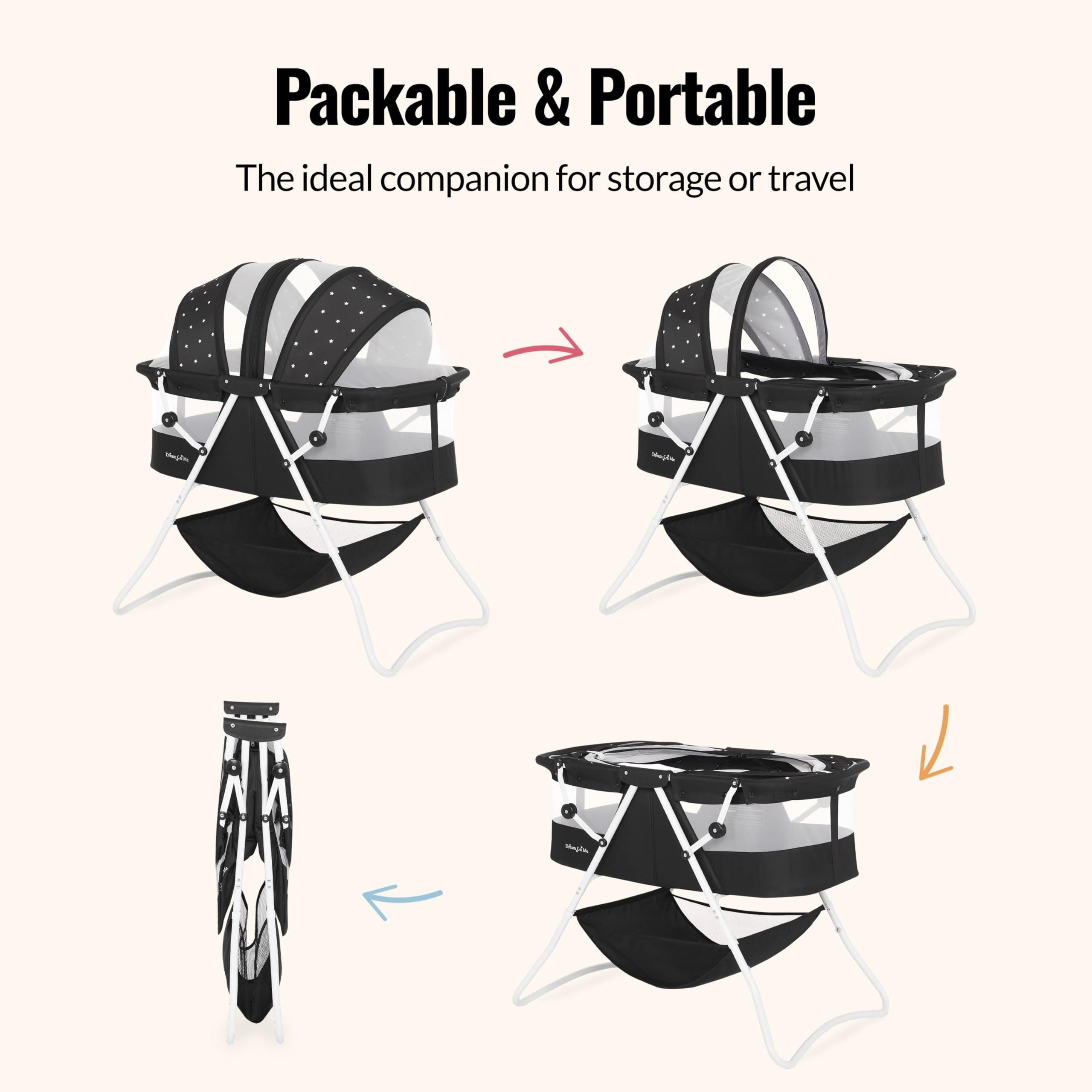 Adjustable Double Canopy: Keeps your baby protected from sunlight, bugs, and curious pets while maintaining an airy, breathable environment for comfortable sleep anywhere.