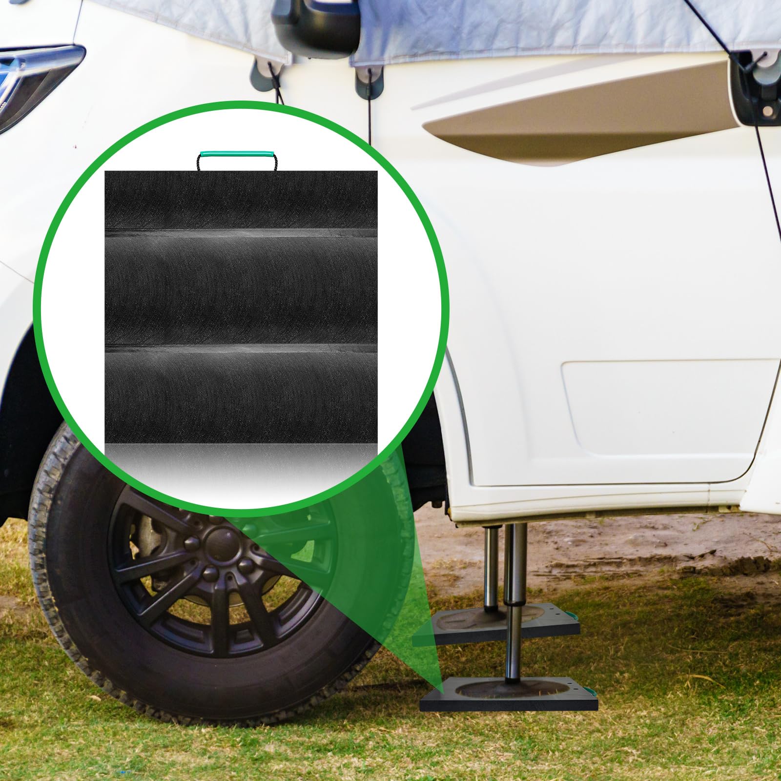 Strong Load Bearing Capacity: designed to handle significant weight, these RV jack pads provide reliable support for your RV's outriggers; Their robust construction allows them to effectively distribute the weight and prevent sinking or tilting, ensuring your RV remains secure and level at all times