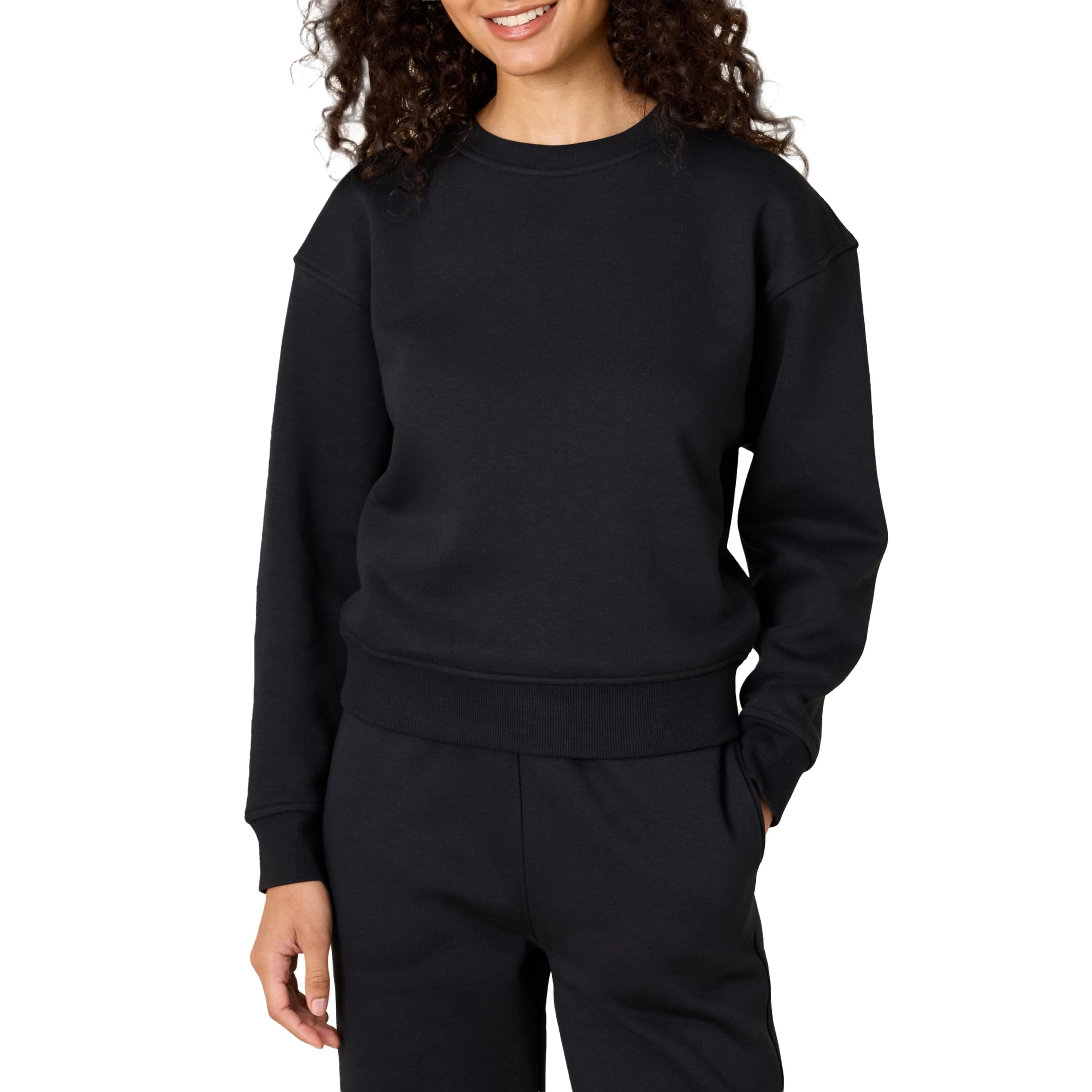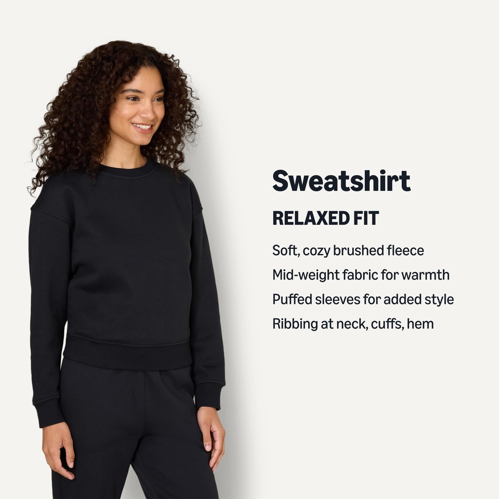 DETAILS: Dropped shoulder boxy fit sweatshirt with soft volume on sleeve, ribbing at neck, cuffs and hem for enhanced stretch and recovery. Perfect for work, travel, weekend wear, or lounging at home