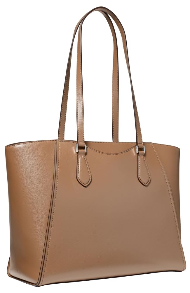 Description The Taryn tote is a polished staple for workdays, weekends, and every moment in between. Crafted from supple leather, this structured bag features trapeze stitching and a detachable lock charm. It unzips to reveal a spacious interior, complete with side pockets and a center compartment for your tablet or valuables.