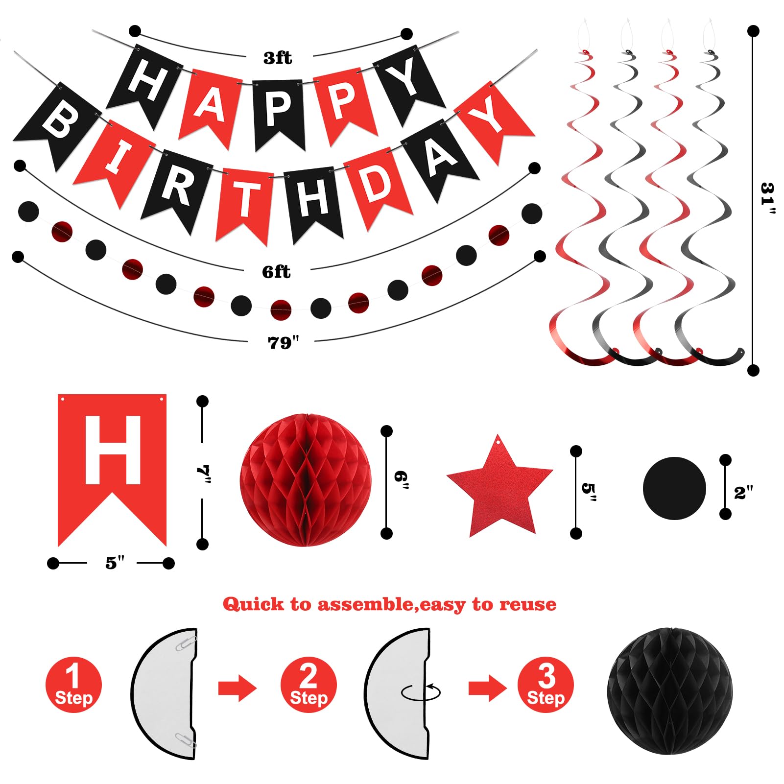 Package Including: With our Birthday Party Decorations package, you'll have everything you need to create the perfect party atmosphere. You can get 1pcs Happy Birthday Banner, 6pcs Honeycomb Balls, 8pcs Stars Swirls Streamers, and 1pcs Circle Dots Decorations. No need to worry about running around and finding individual items. It's convenient package.
