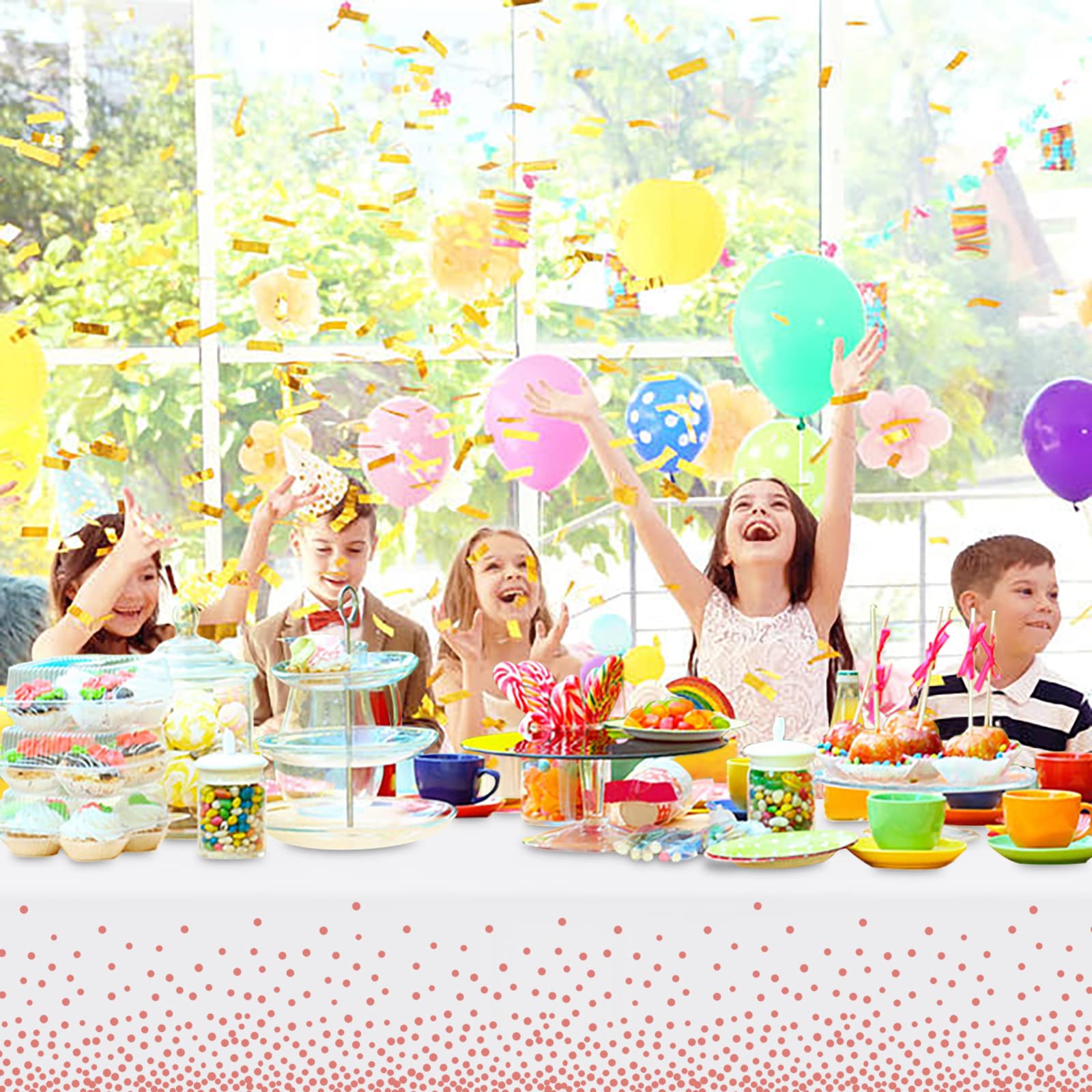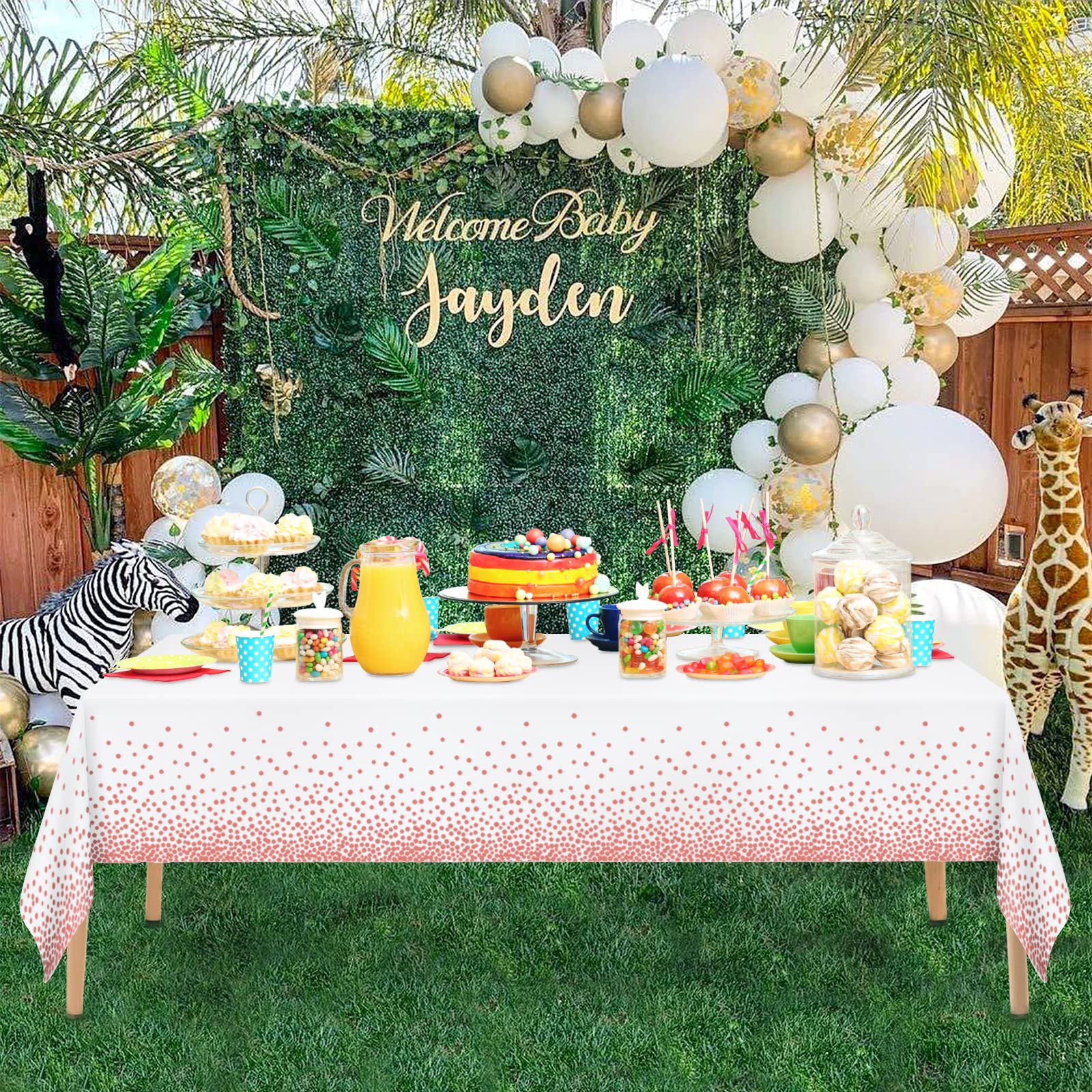 Excellent Quality: White and rose glod polka dot plastic party tablecloths are made of premium durable PE material. Perfect for indoor-outdoor to provide a relaxed and minimalist space for dining and enjoying your party time.
