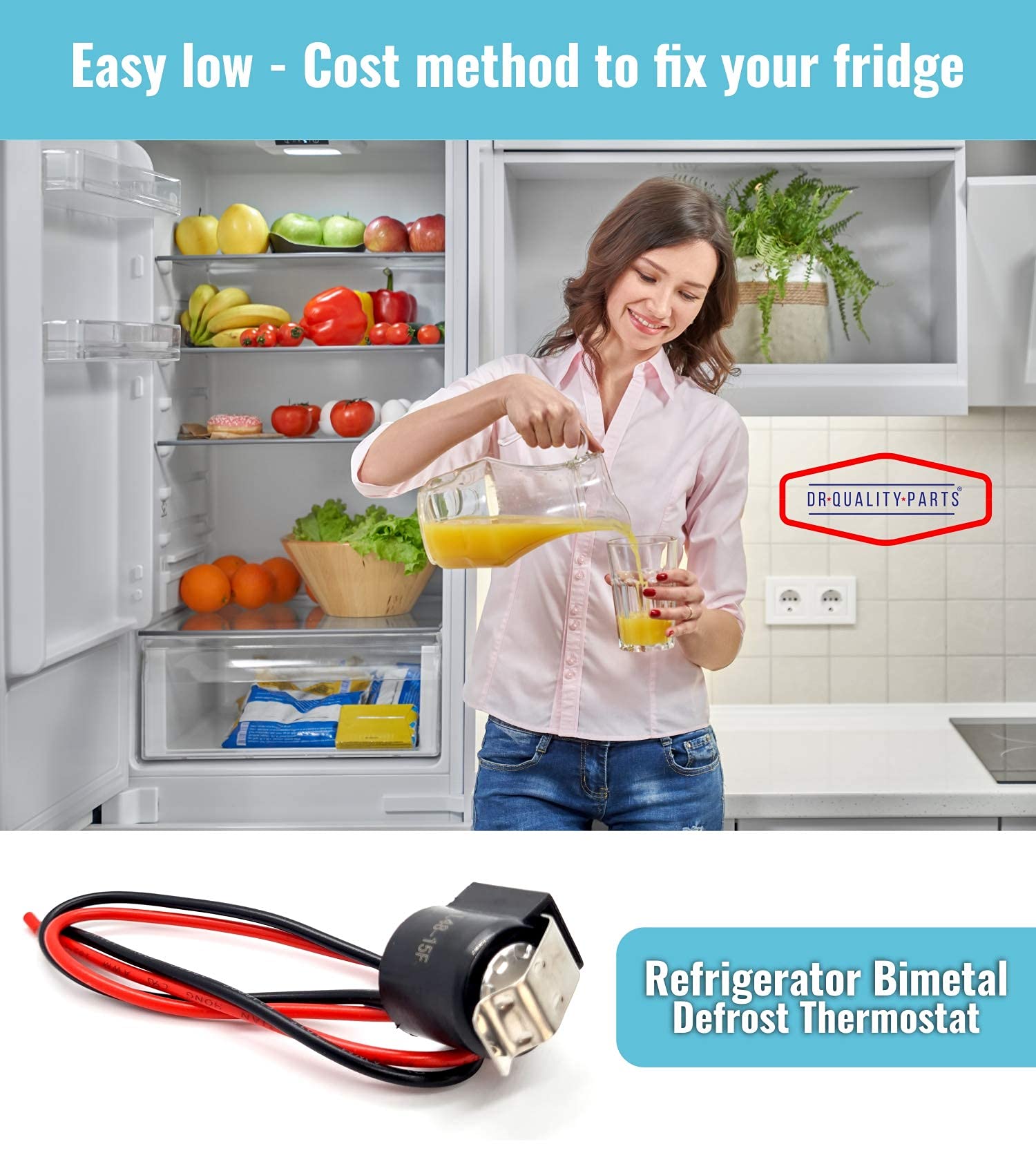 W10225581 Refrigerator Bimetal Defrost Thermostat (Fixes Temperature Issues) Replacement Part by DR Quality Parts - Compatible with Whirlpool ect. WPW10225581 PS11750673 2149849