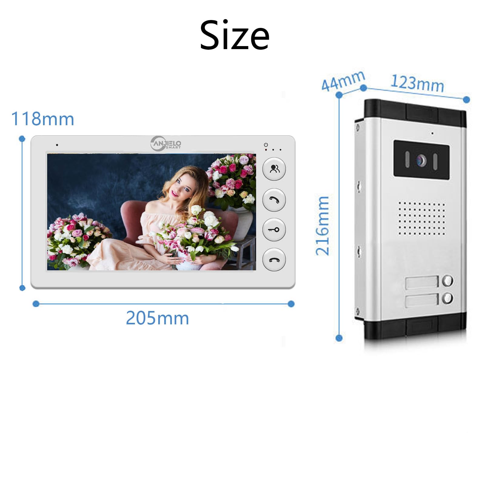 Wired Video Apartment Intercom System,2/3/4/5/6/8/10/12 Units 7 inch Monitor Video Door Phone Kit,Indoor Outdoor Video Doorbell,2 Way Audio for Home Camera Sensor:1.0MP,1/4"CMOS,3.6MM Lens View Angle:90 Degree Rainproof & Night vision:IP 55& 5M night vision Model size:275* 125* 45mm Material:Aluminum alloy Power supply:Supplied from indoor monitor Operation temperature:-30°-60° Installation:flush-mounted Monitor:7 inch touch key Size:205mm*108mm*22mm Resoulution:800*480 Function:2 way intercom/monitor/unlock/mute mode Power supply:DC 15V 1.2A Material:Glass panel Installation:Surface Mount Wire:4 wire cable