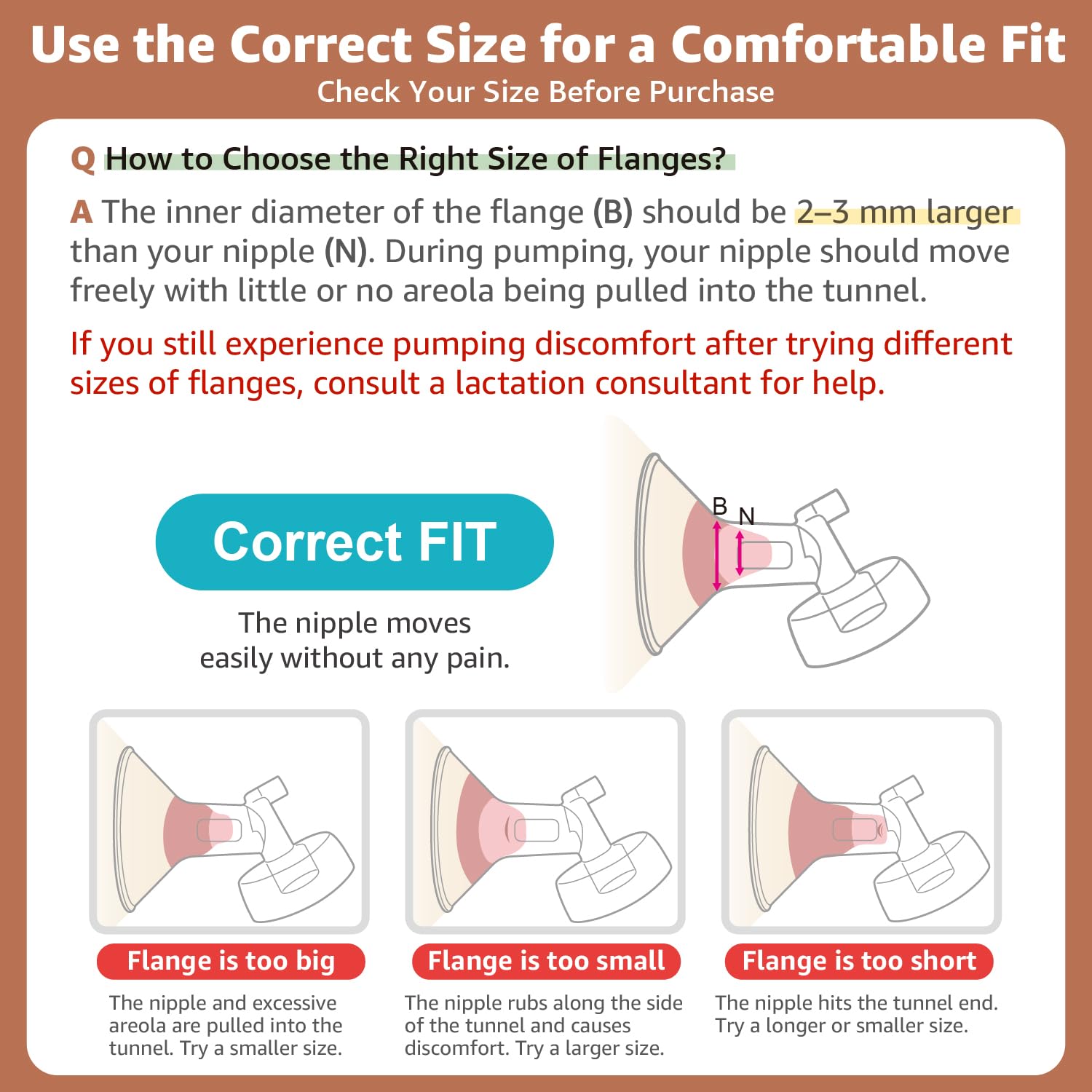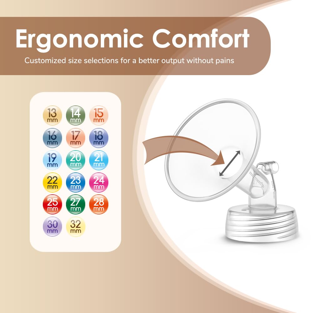 MAYMOM FLANGE can work with Spectra wide-neck bottle (wide-mouth bottle), Compatible with Avent bottle, and Maymom widemouth bottle. Available Flange sizes:13mm, 15mm, 17mm, 19mm, 21mm, 24mm, 25mm, 27mm, 28mm, 29mm, 30mm, 32mm.