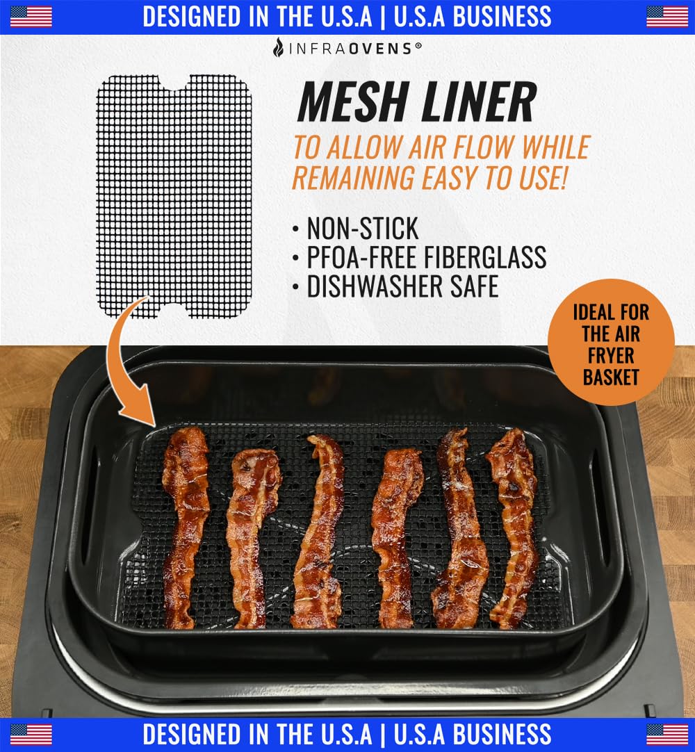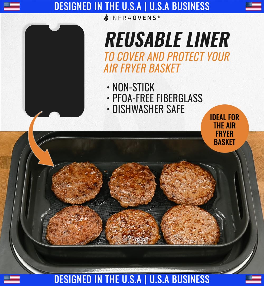 AIR FRYER REUSABLE LINERS – Compatible with the Ninja Foodi Smart Xl Grill (CRISPER BASKET ONLY) See models below. (Ninja, Foodi are trademarks or registered trademarks of its respective holders. Infraovens is not affiliated with nor endorsed by them).