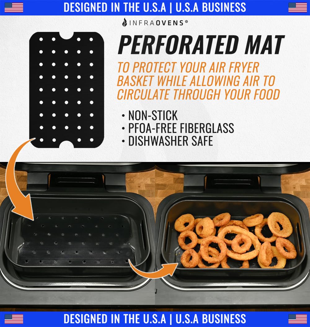 PERFORATED MAT FOR AIRFLOW – Use the air fryer perforated mat to protect your basket while still allowing air to flow throughout your food. This is the ideal replacement for air fryer parchment paper liners.