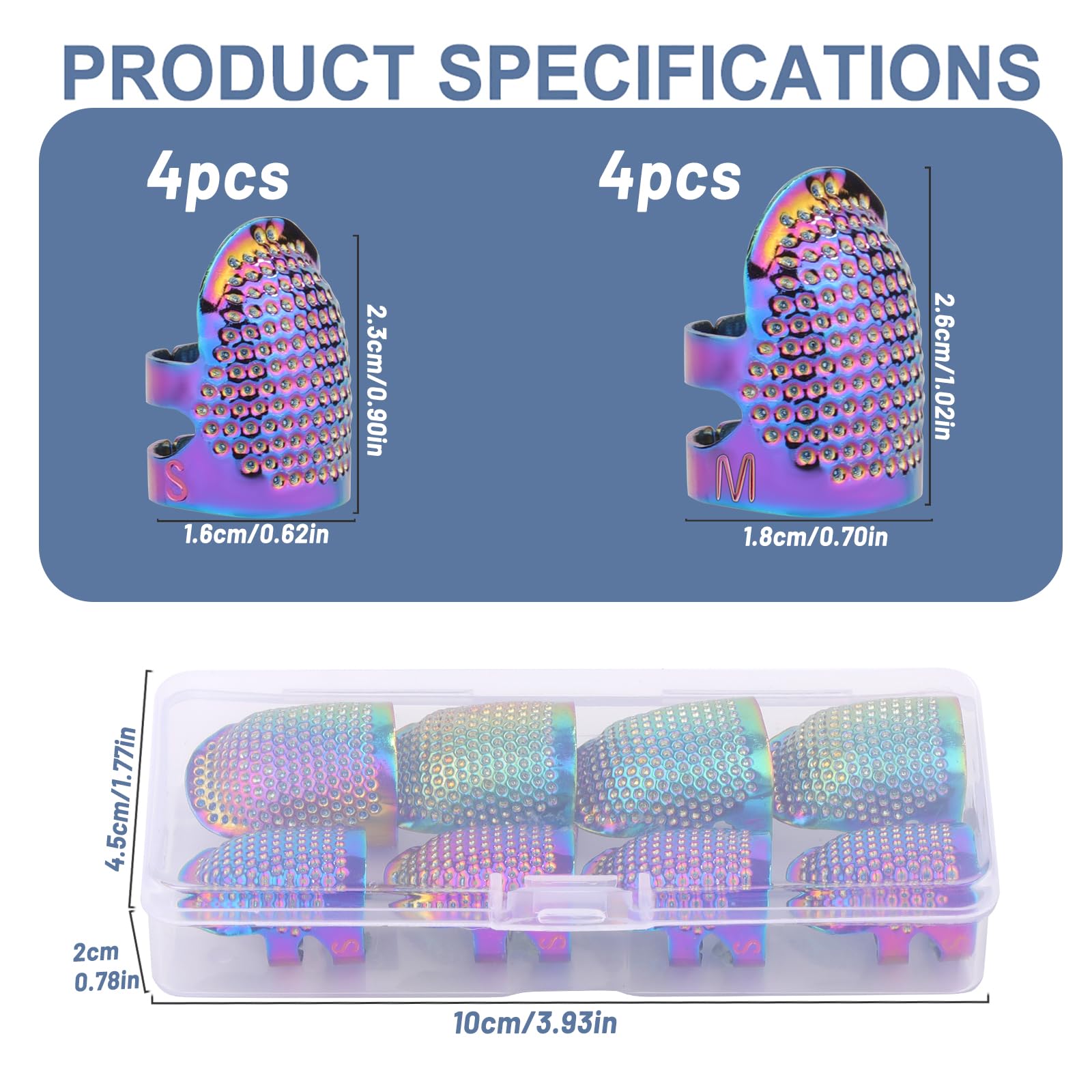 Complete Sewing Thimble Set: Finger thimble set with 8 thimbles for hand sewing, available in 2 different sizes, four of each, our set meets all your sewing and finger protection needs.