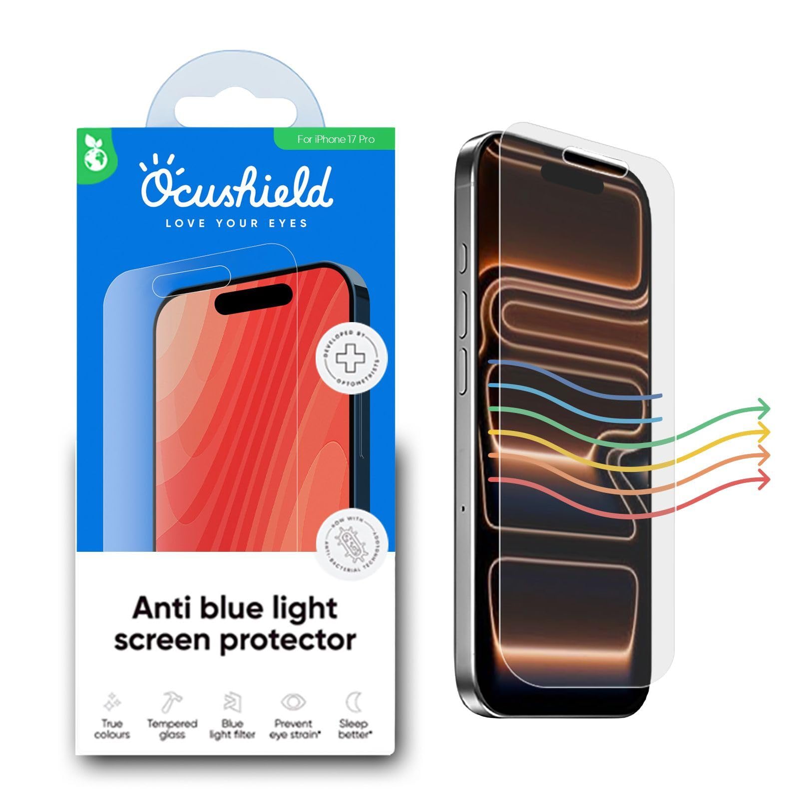 Ocushield’s Blue Light Screen Protector for 17 Pro limits side-angle screen visibility, so your personal information stays private whether you're in a crowded café or commuting on a train. The advanced blue light filter naturally reduces up to 30% of harmful blue light, helping prevent digital eye strain and support better sleep. With 95%+ transparency, you’ll enjoy vibrant visuals and responsive touch just like a bare screen. Crafted from ultra-strong tempered glass, this protector shields your phone from scratches, smudges, and drops. Installation is quick and frustration-free thanks to our included applicator tray and cleaning kit. As seen on Dragons' Den / Shark Tank, Ocushield products are designed by optometrists and trusted by thousands.