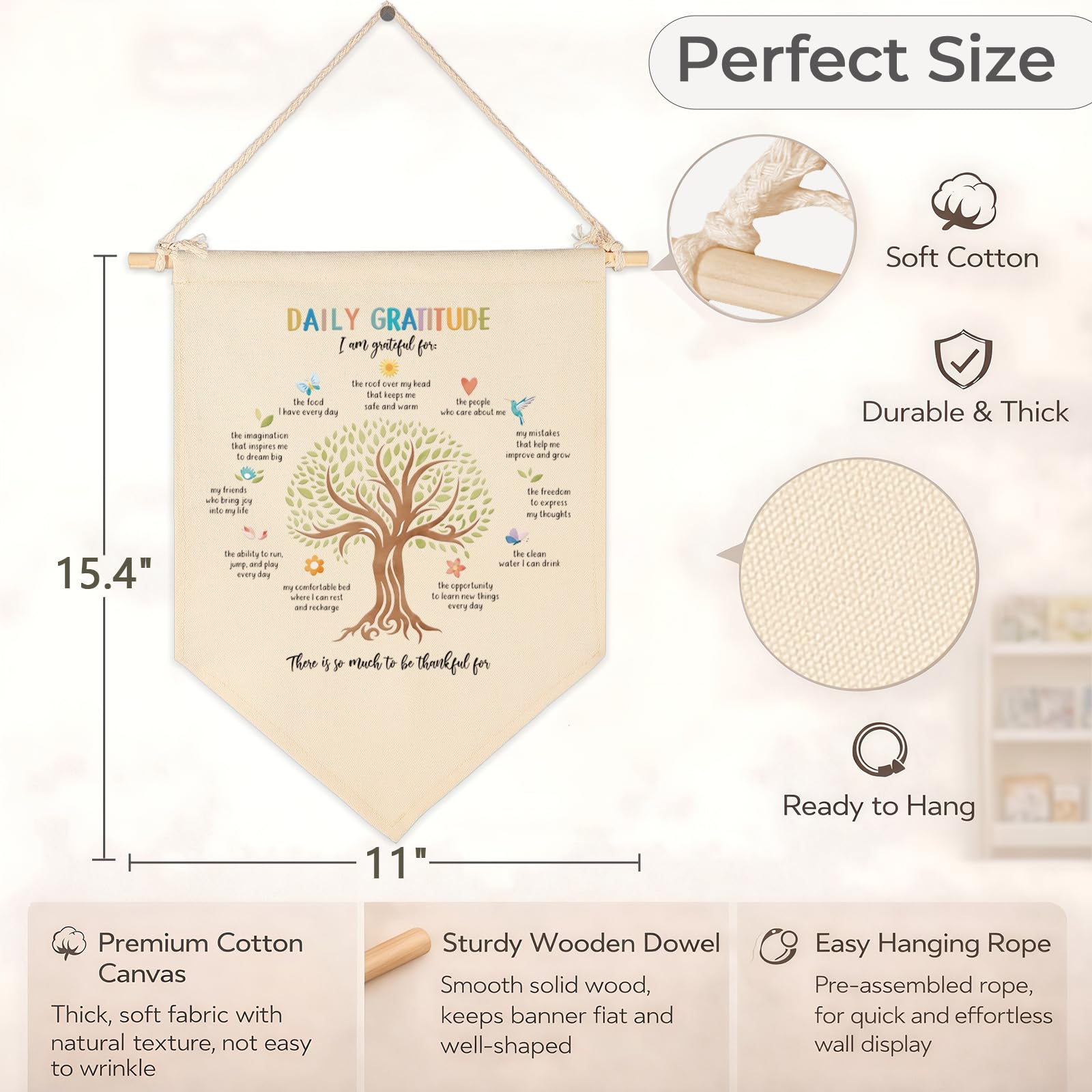 PREMIUM ARTISAN CANVAS: Crafted from high-density, high-quality canvas fabric, this hanging sign offers a premium tactile feel. The durable material and soft, nature-inspired printing ensure the gratitude tree remains a lasting part of your classroom traditions