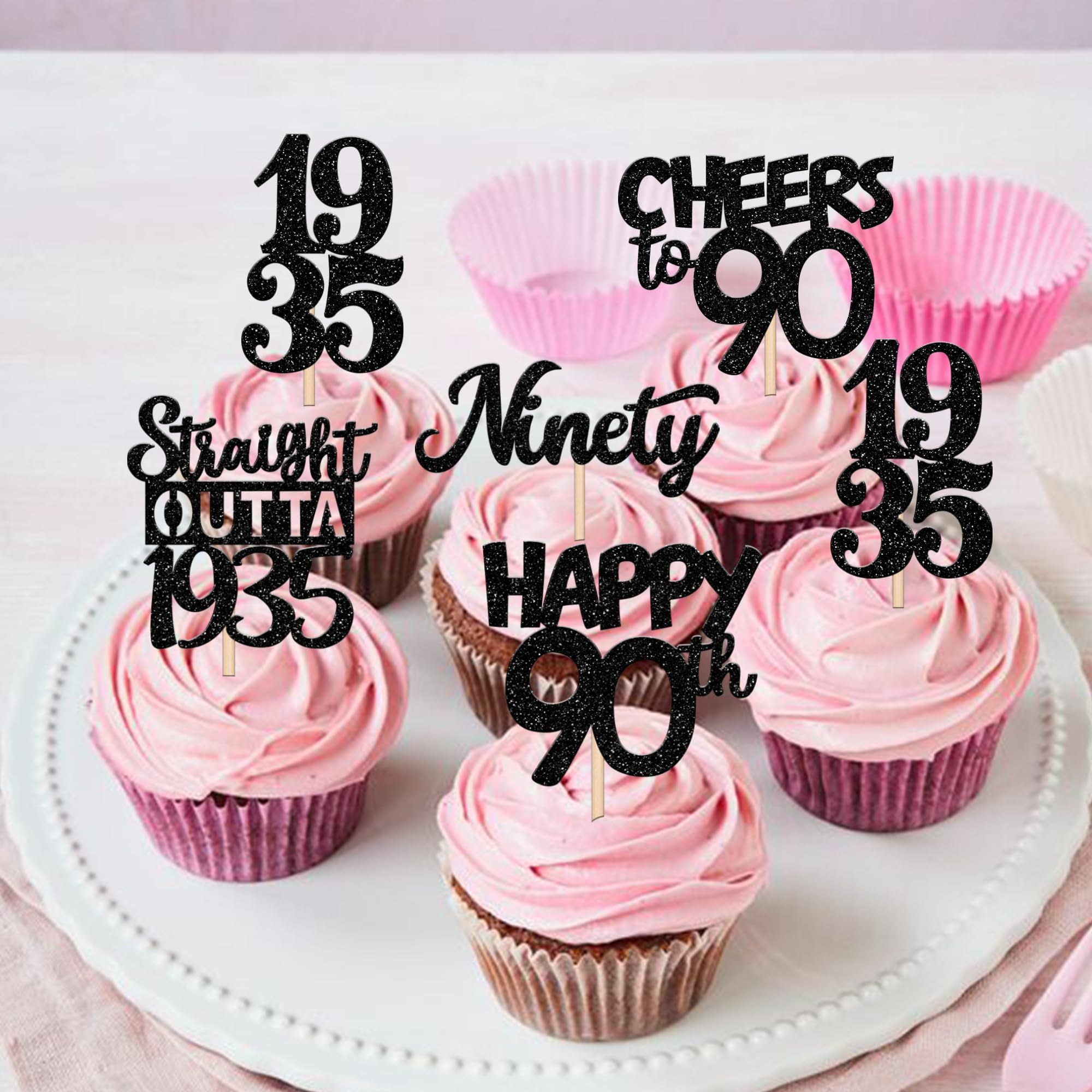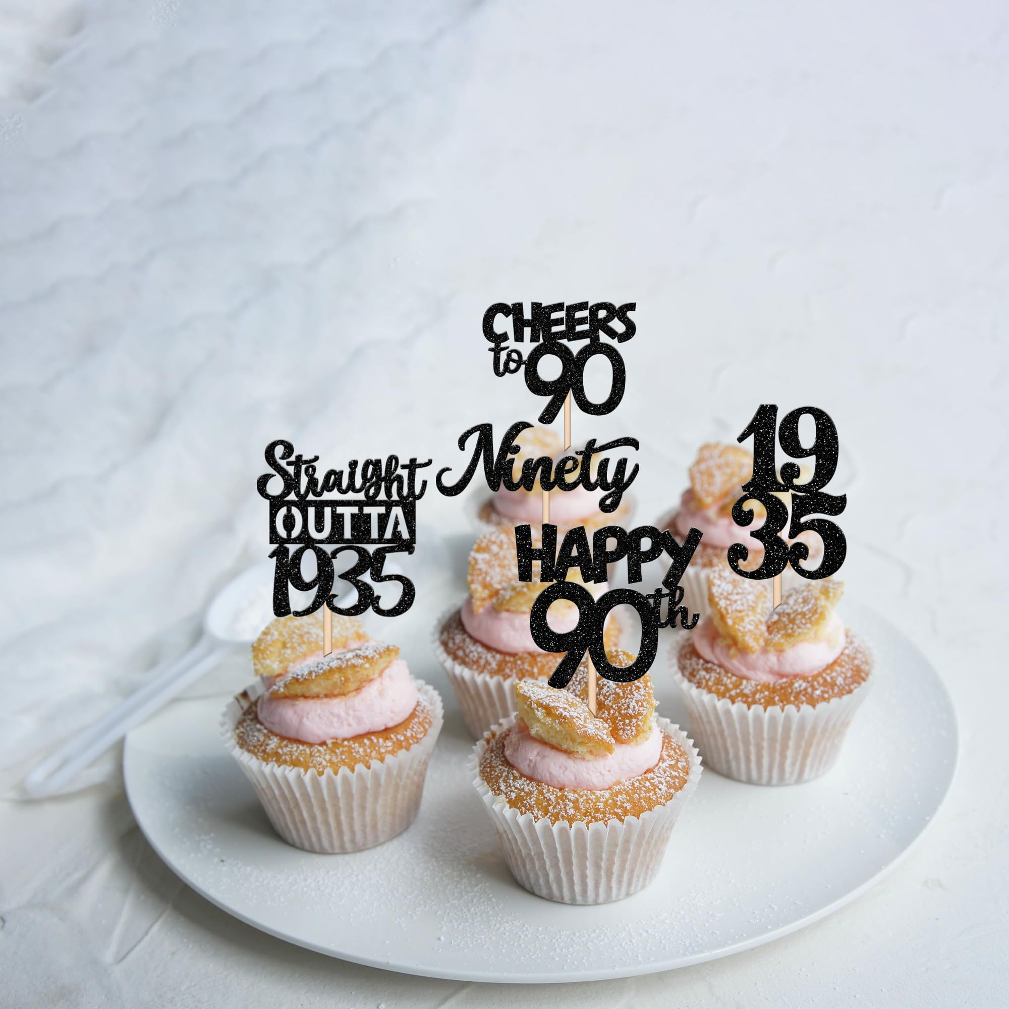 Wide Usages ! These straight outta 1935 cupcake toppers are perfect for happy 90th bithday theme party, straight outta 1935 theme party,90th wedding anniversary theme party,cheers to 90 years theme party cupcake decorations, they can make your cupcake more attractive and bring the fun to your party.You can also apply them for ice cream, fruits, cookies and other desserts.