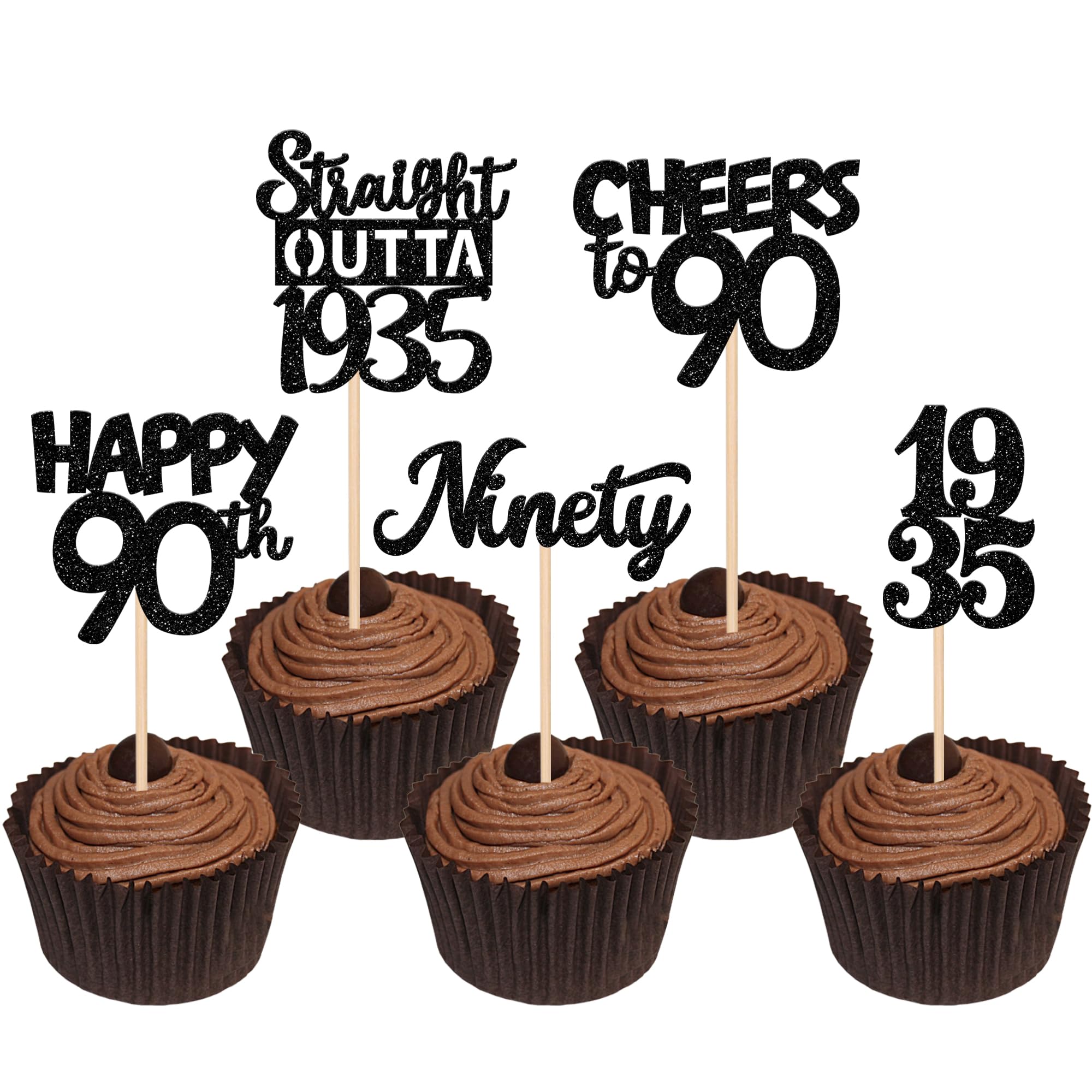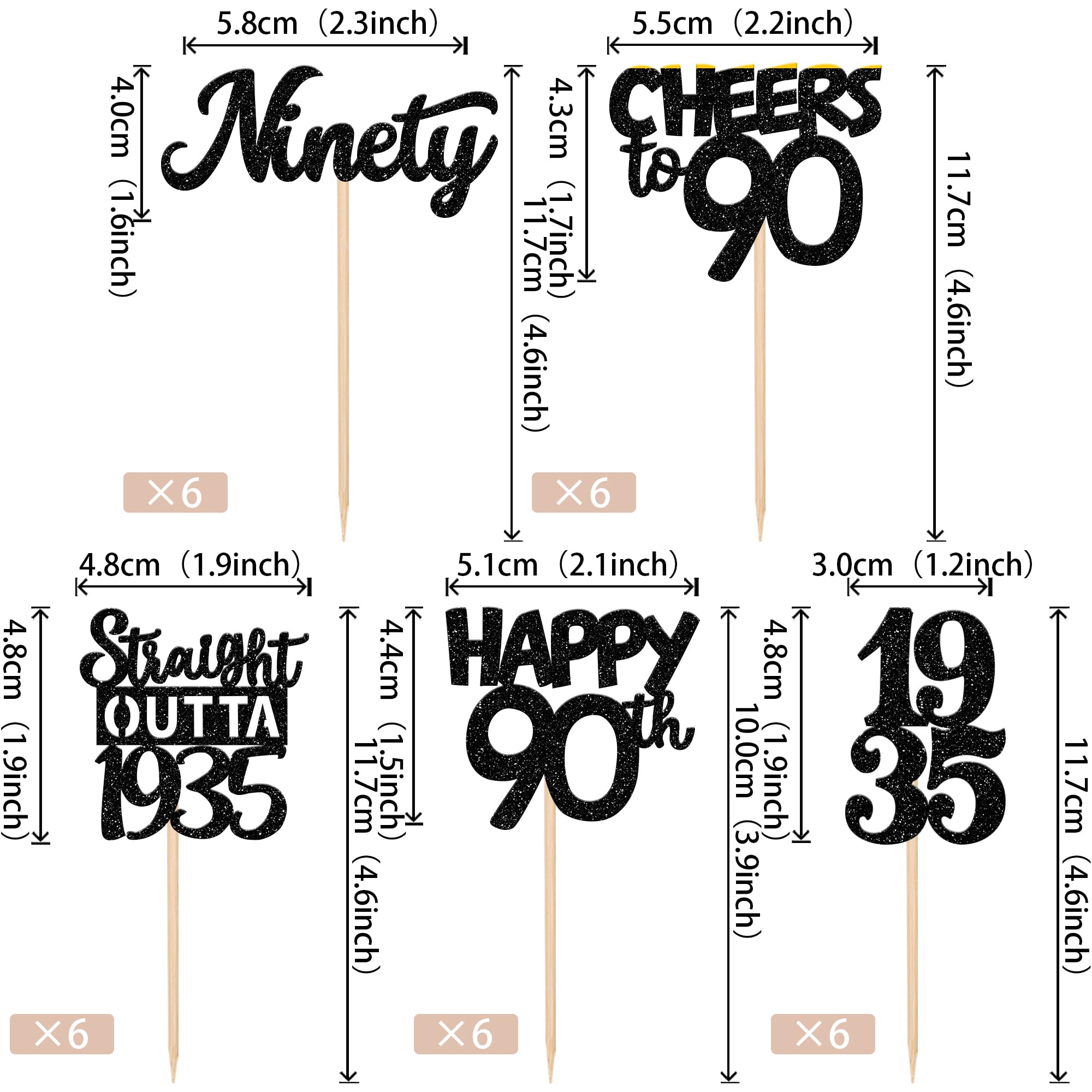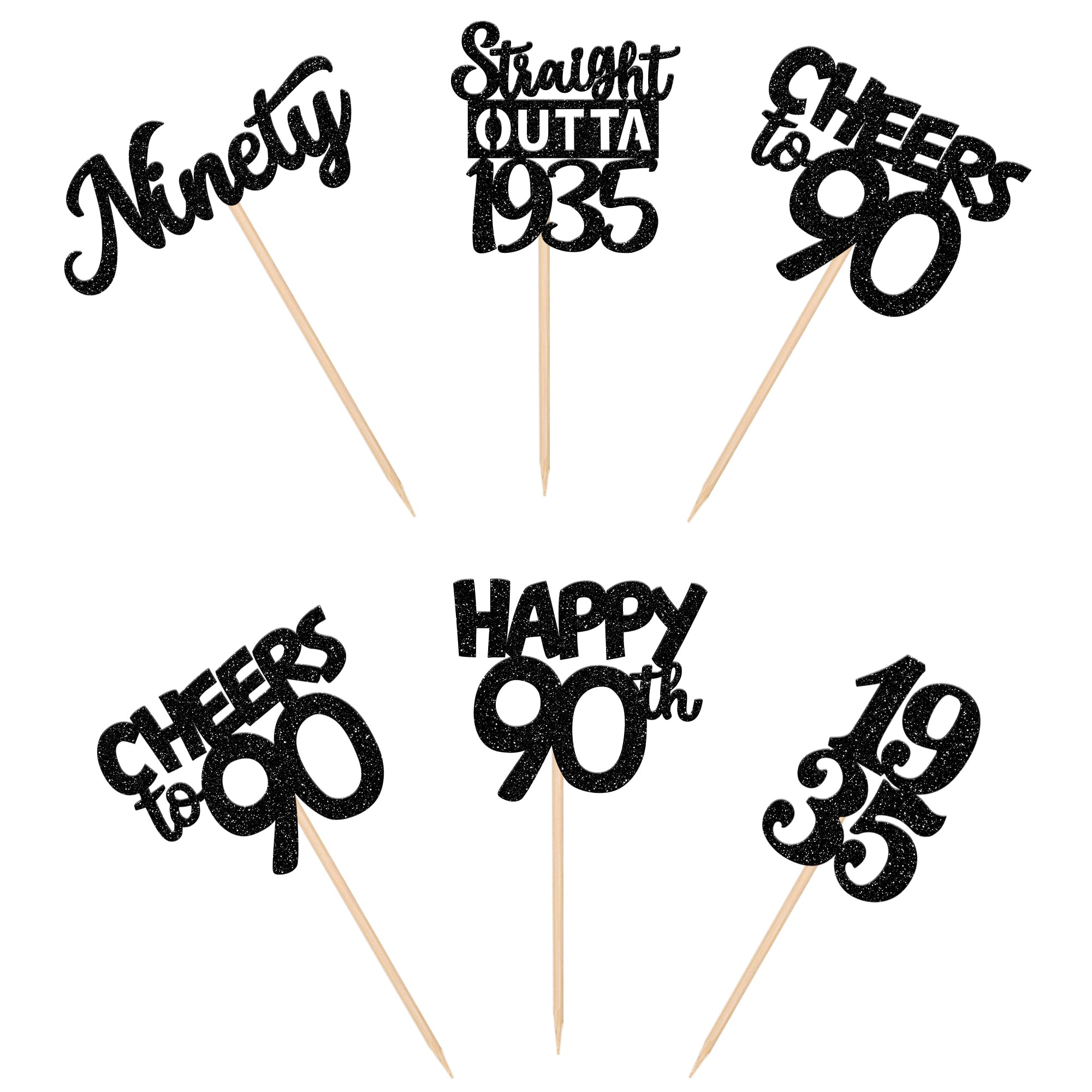 Straight Outta 1935 Cupcake Toppers for Happy 90th Birthday Anniversary Party Cake Decorations Supplies Perfect for happy 90th bithday theme party,straight outta 1935 theme party,90th wedding anniversary theme party,cheers to 90 years theme party cupcake decorations supplies. Pack of 30 pcs,6 pcs of each design The size is 2.3*4.6/ 2.2*4.6/ 1.9*4.6/ 2.1*3.9/ 1.2*4.6 inch ( with stick ) Made of high quality paper card stock, thick and thick and sturdy. These cupcake toppers are single glitter, the back is white, and they are intended for decoration only, please do not put them in oven or microwave. If the item you received has any defects, please contact us immediately.we will deal with it within 24 hours.