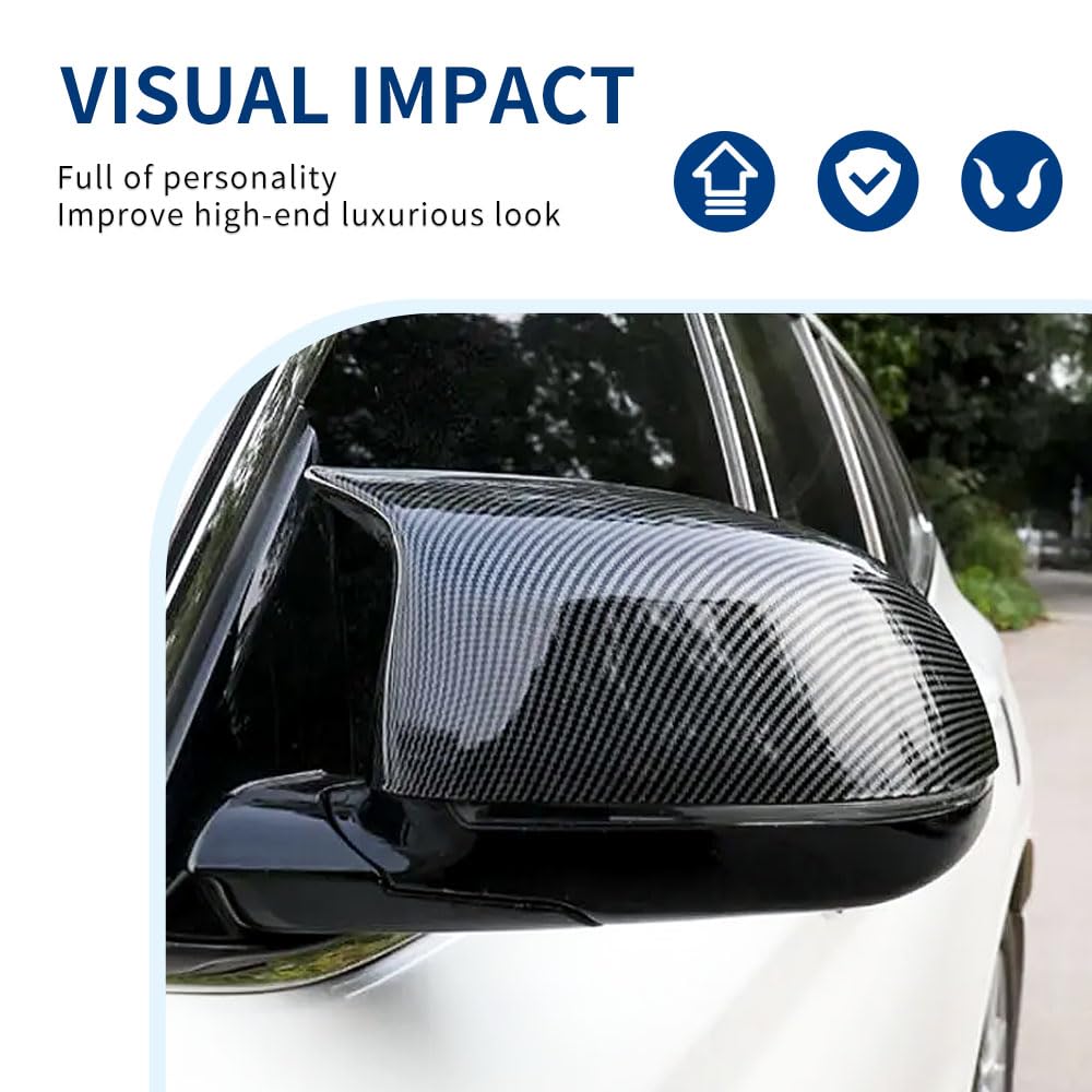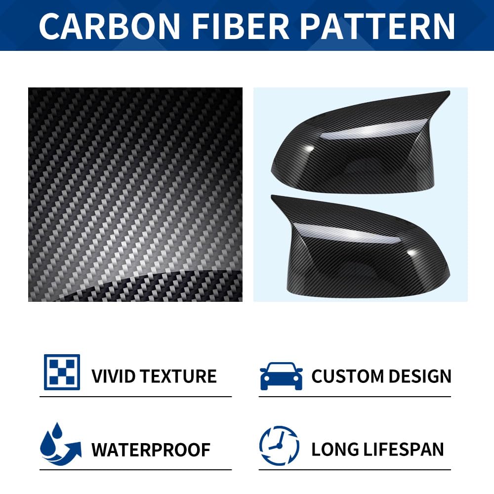 Package: A pair of mirror caps, no instruction. This option features a rearview mirror cover made of ABS plastic material that has a 3D printed carbon fiber pattern