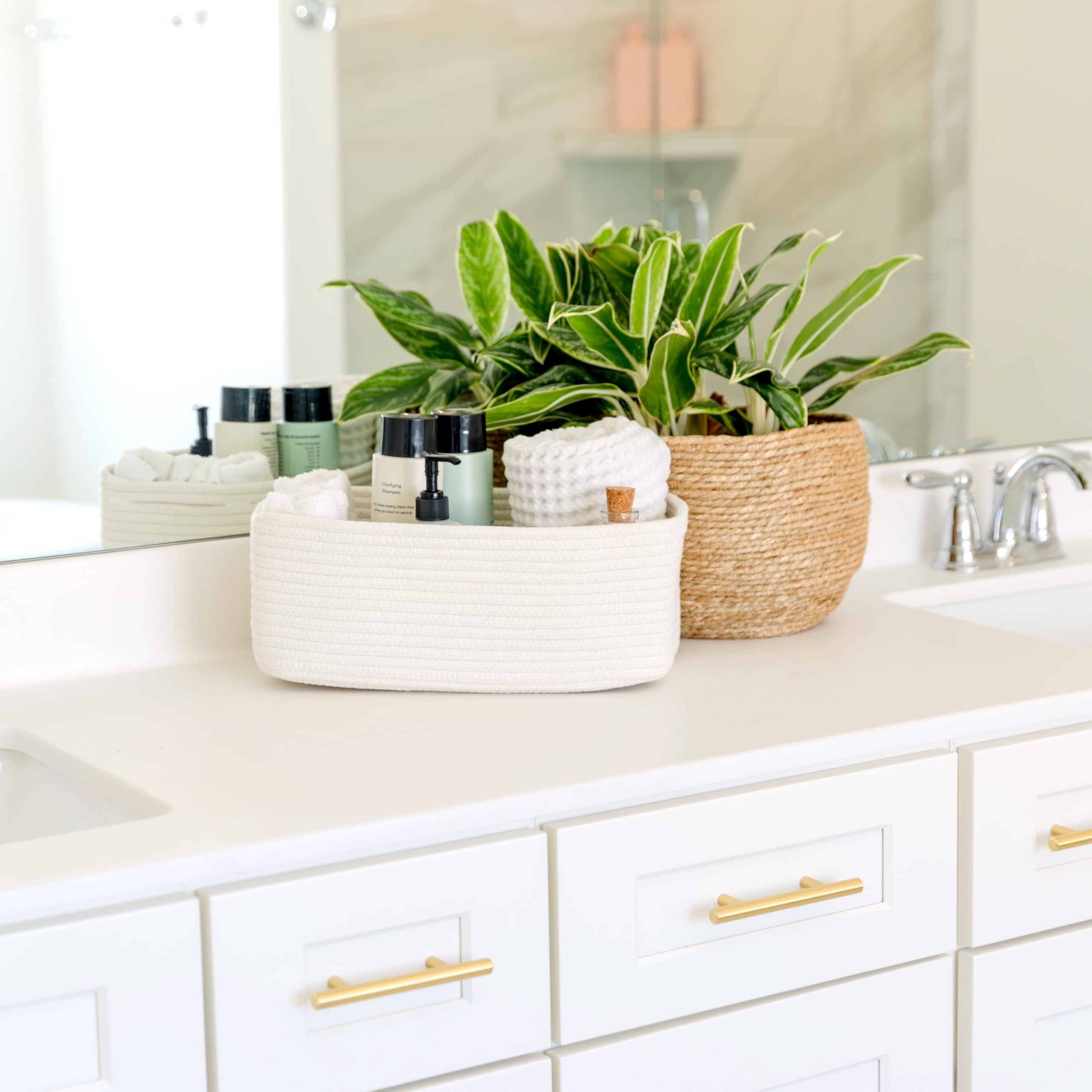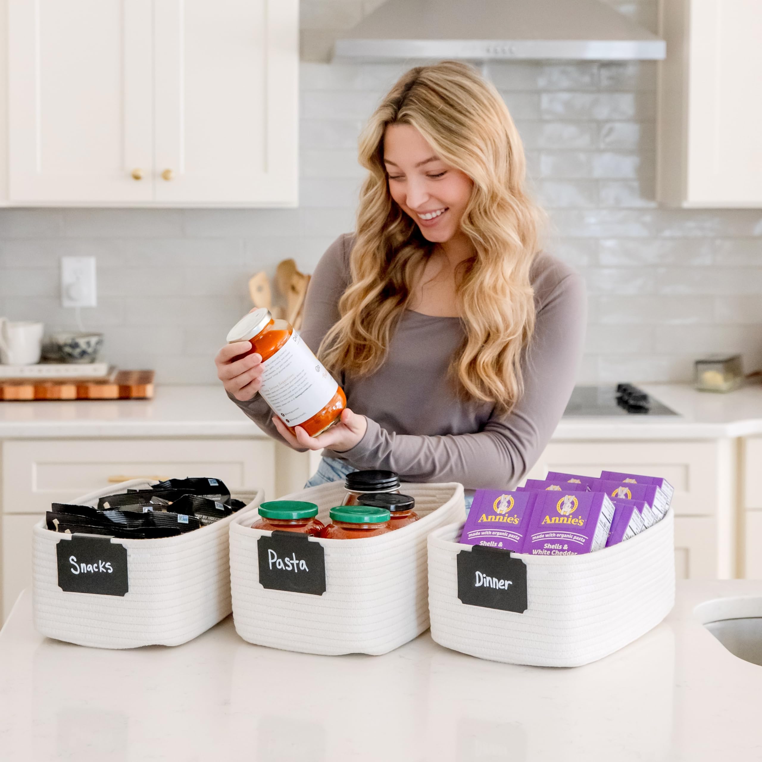 Safe, Natural Cotton Organizer Bins: Crafted from the highest quality material in the market, our storage bins are oh-so-sturdy (and cute) and ready to take on little humans. They’re 100% safe, so you can rest easy if teething toddlers take a nibble. Reinforced Hidden Handles: Now you see ‘em, now you don’t! With completely hidden handles that blend seamlessly into the rope basket, you’ll be the Houdini of home organizing. They’re even double-stitched and reinforced for extra heavy loads!