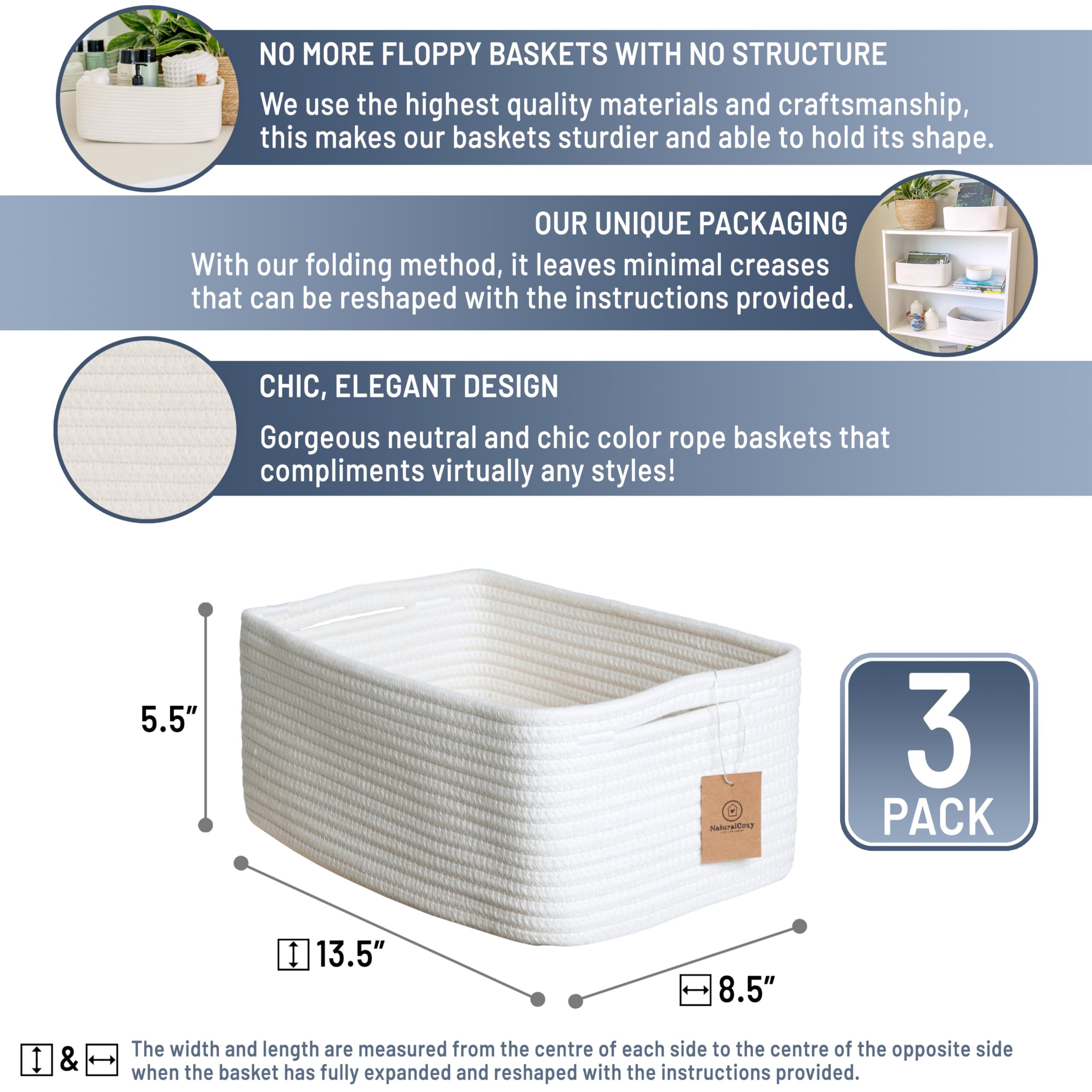 Say Goodbye to Wrinkly Floppy Woven Baskets: No more dealing with permanently creased, flimsy storage basket, unlike others our rope basket stays firm and structured. With our unique folding method and quality rope, shaping is easy with our instructions!