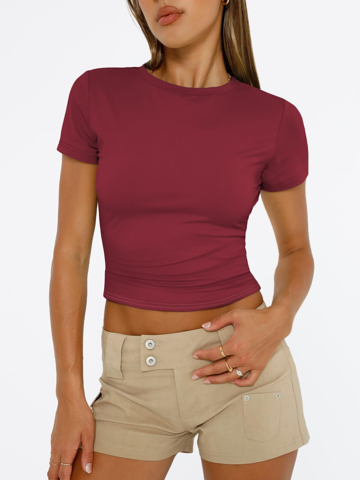 The Perfect Length: Not Too Short, Not Too Long: Struggling to find a top that's not a full-on crop top but still flattering with high-waisted jeans? This is it. Designed to hit right at the waistline, it gives you that "snatched" look without constantly riding up. It's the "perfect length" that allows you to move, sit, and stretch comfortably—whether you're running errands or hitting the gym