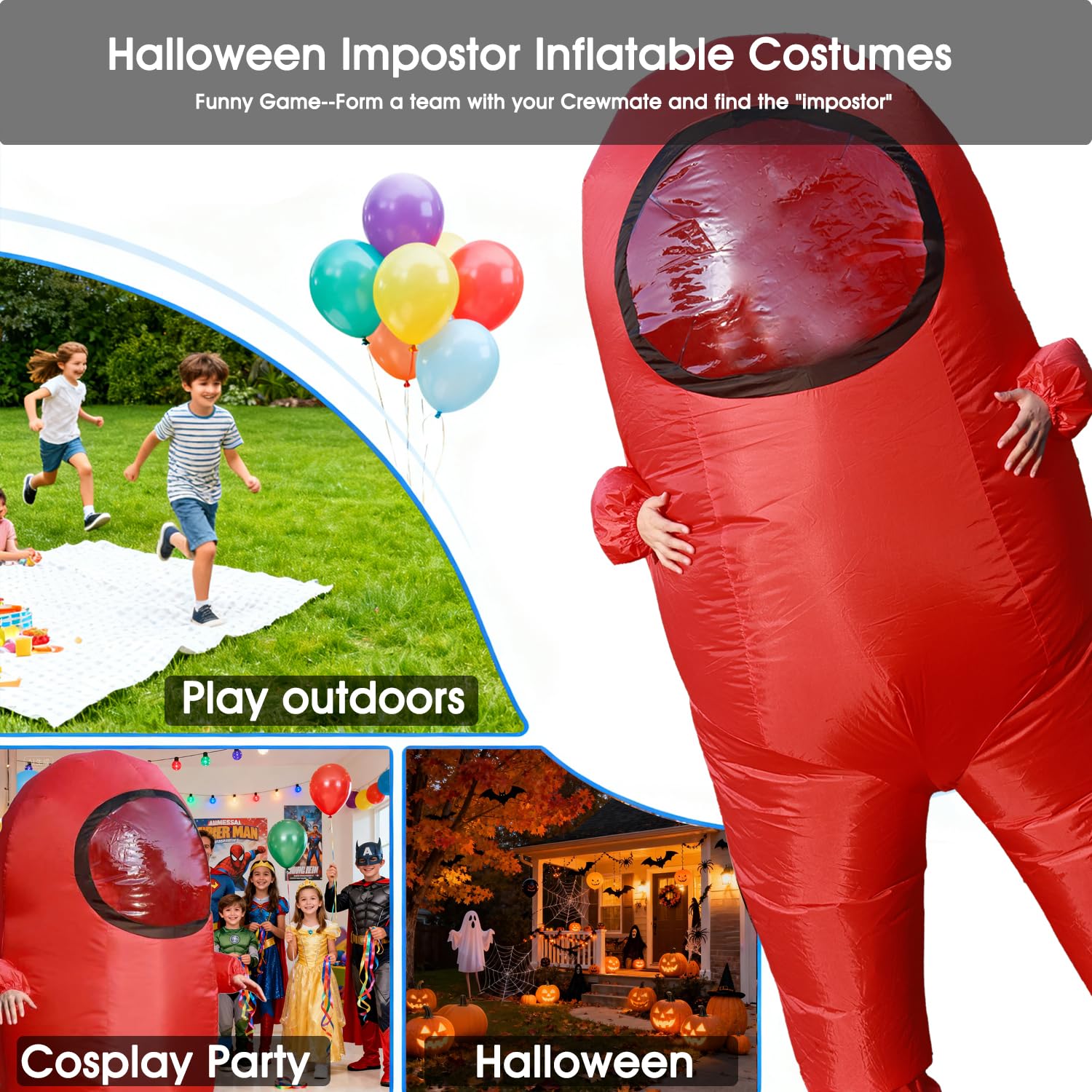 The imposter inflatable costume accommodates individuals between 160-195 cm in height. It is crafted from durable polyester, featuring windows made of double-layer material, allowing you the freedom to enjoy trick-or-treating.
