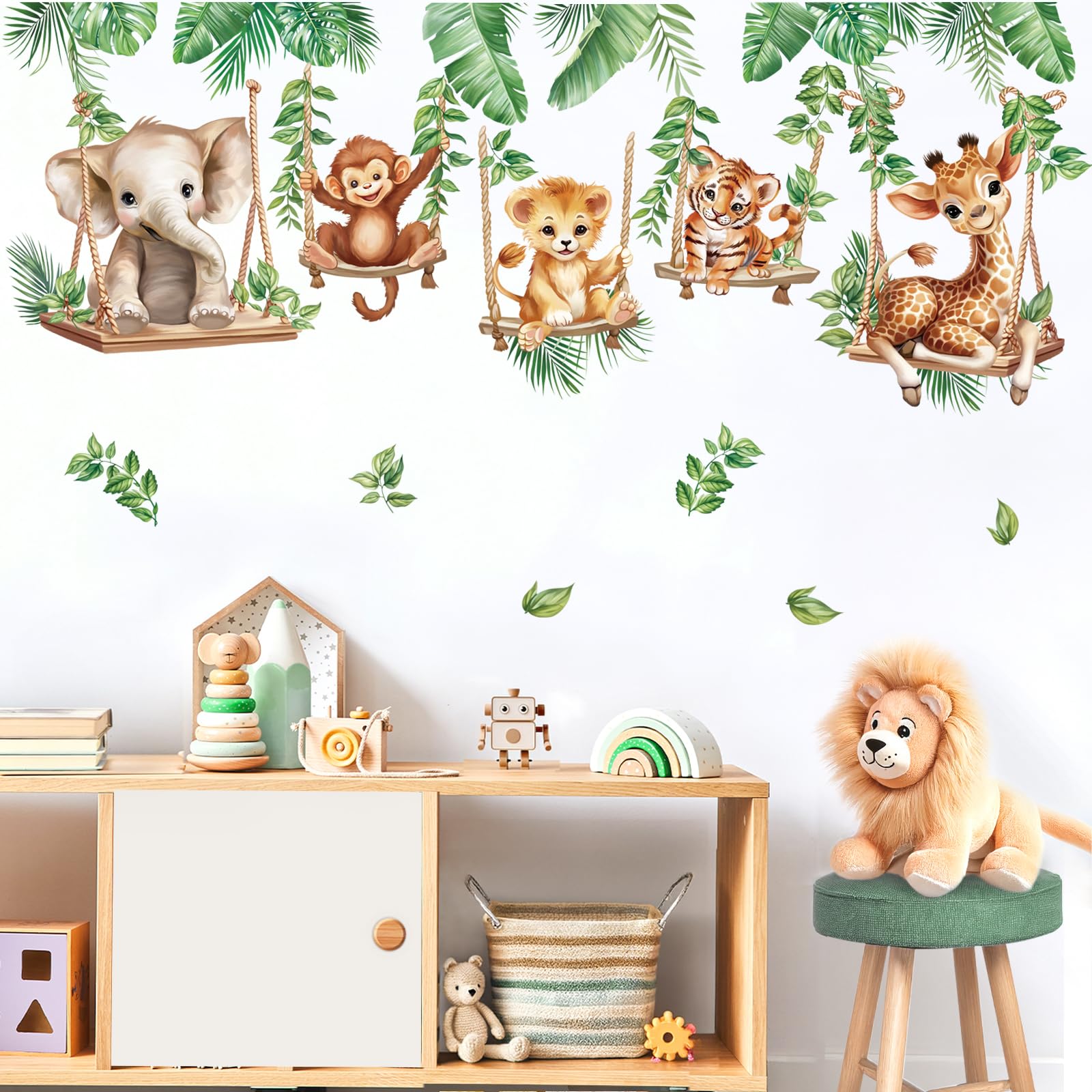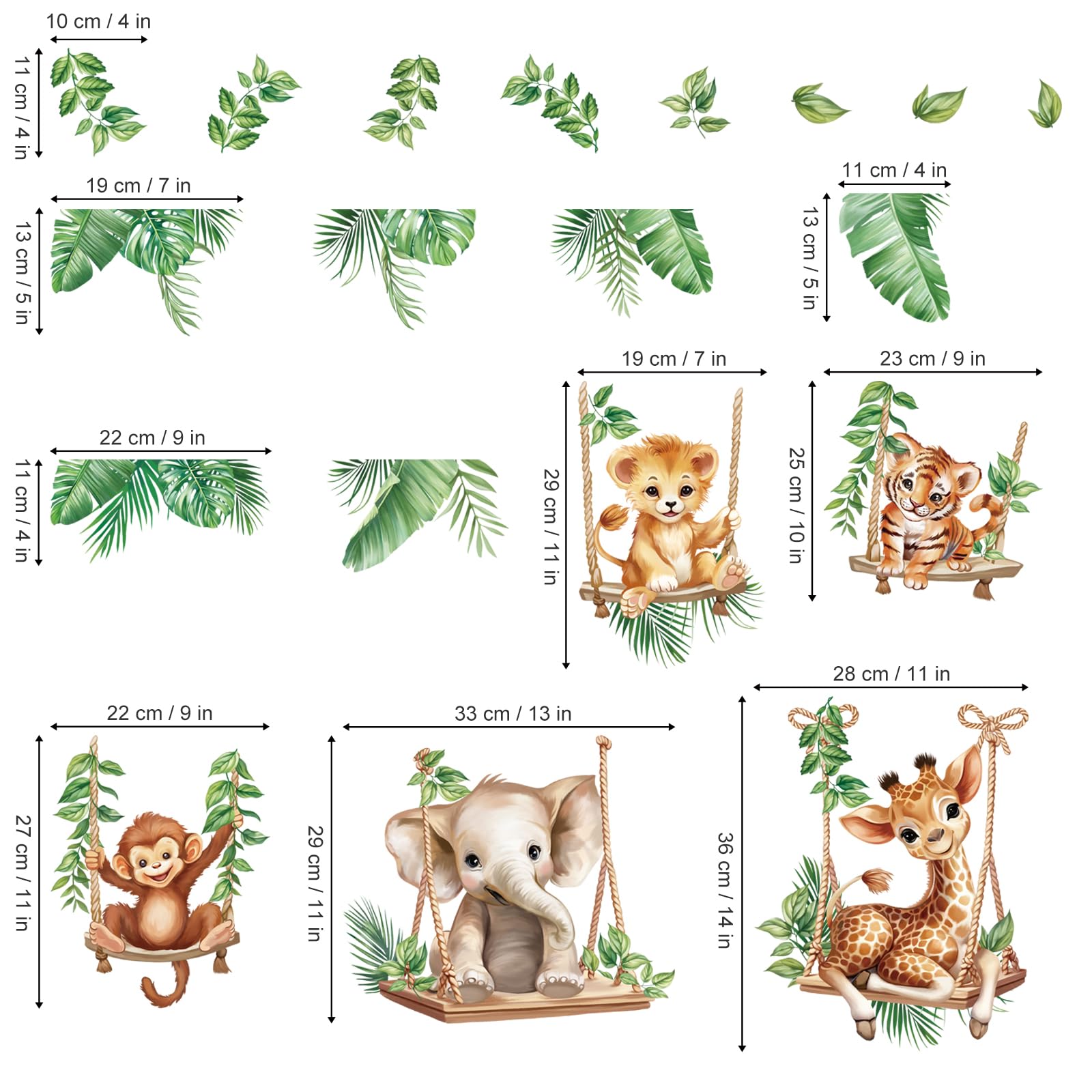 Includes 2 Stickers: Get 2 stunning jungle animal stickers in one pack, featuring a lion, elephant, and giraffe, along with tropical leaves for added detail