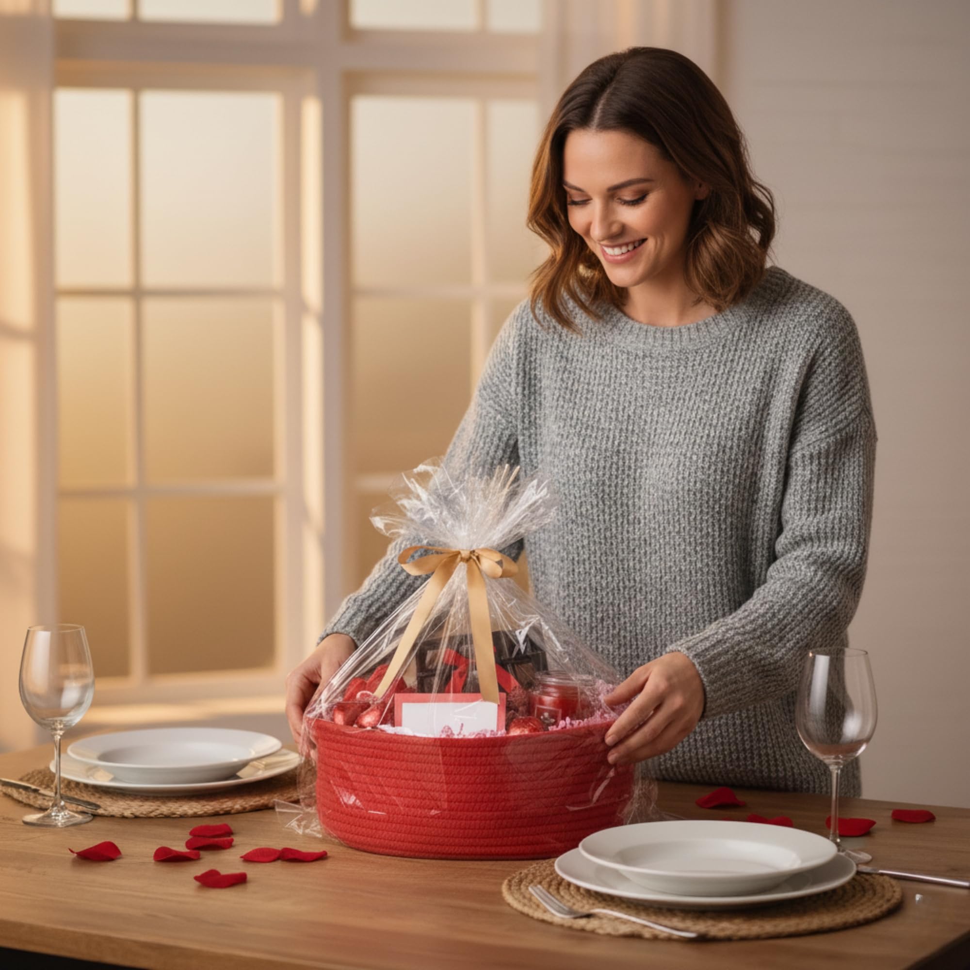 Complete Gift Wrapping Set: Includes an empty woven basket, a wrap bag, and a ribbon; perfect for creating a beautiful and personalized gift presentation