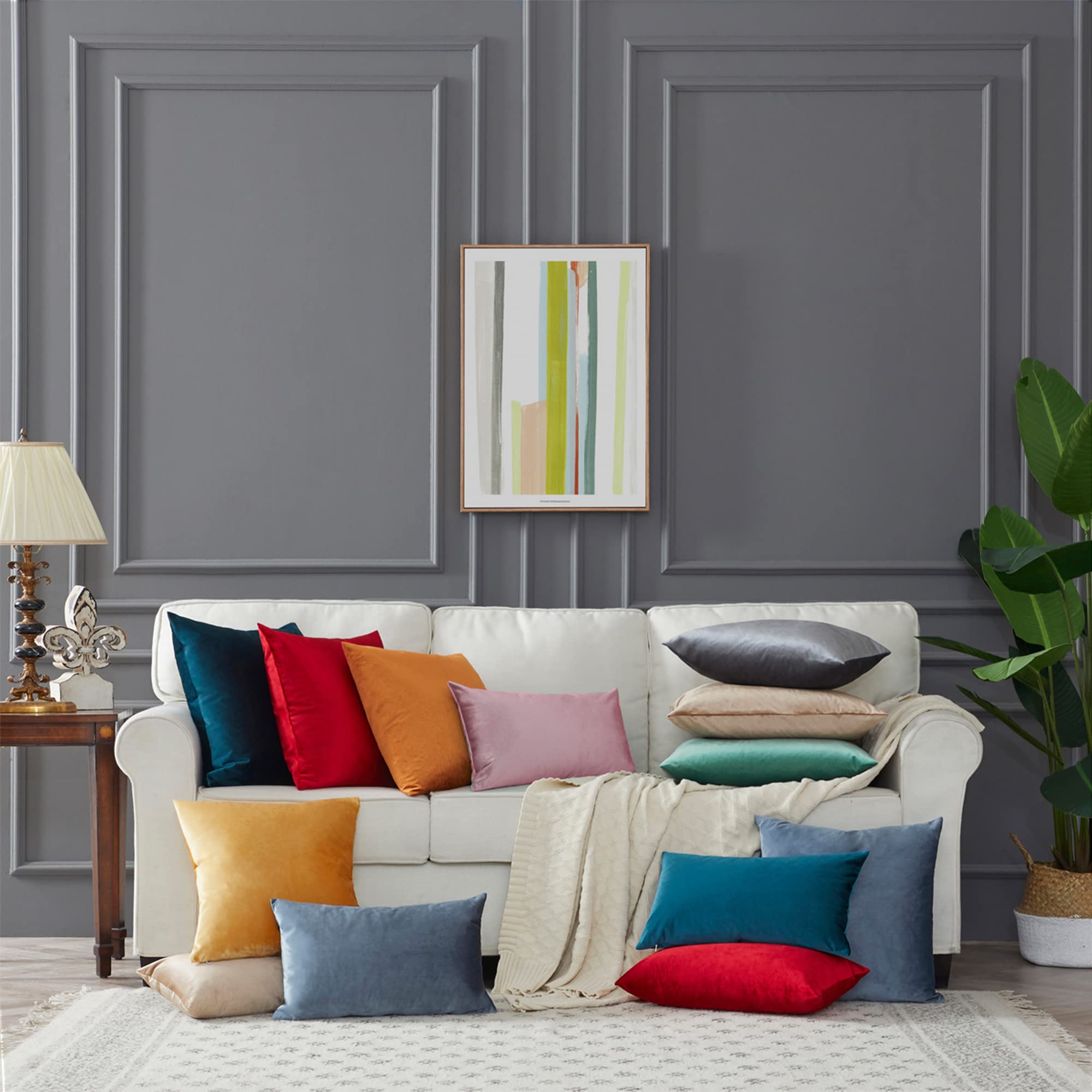 SOFT & COMFORTABLE MATERIAL :High quality classic soft velvet fabric , Comforter and Durability .2 pack decorative sofa cushion covers .Champagne color is luxury and clean.Skin-Friendly .